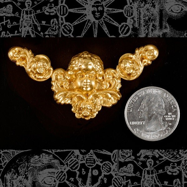 Raw Brass Cherubs in the Clouds Pendant - B-P36