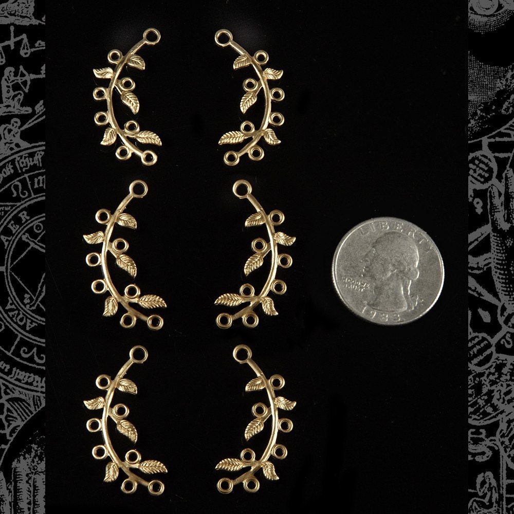 Raw Brass Connector Branch with Eight Loops Five Leaves - Set of Six - XXX - B-2C02