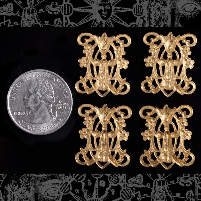 Raw Brass Decorative Filigree Four Ring Connectors - Set of Four - B-4C07