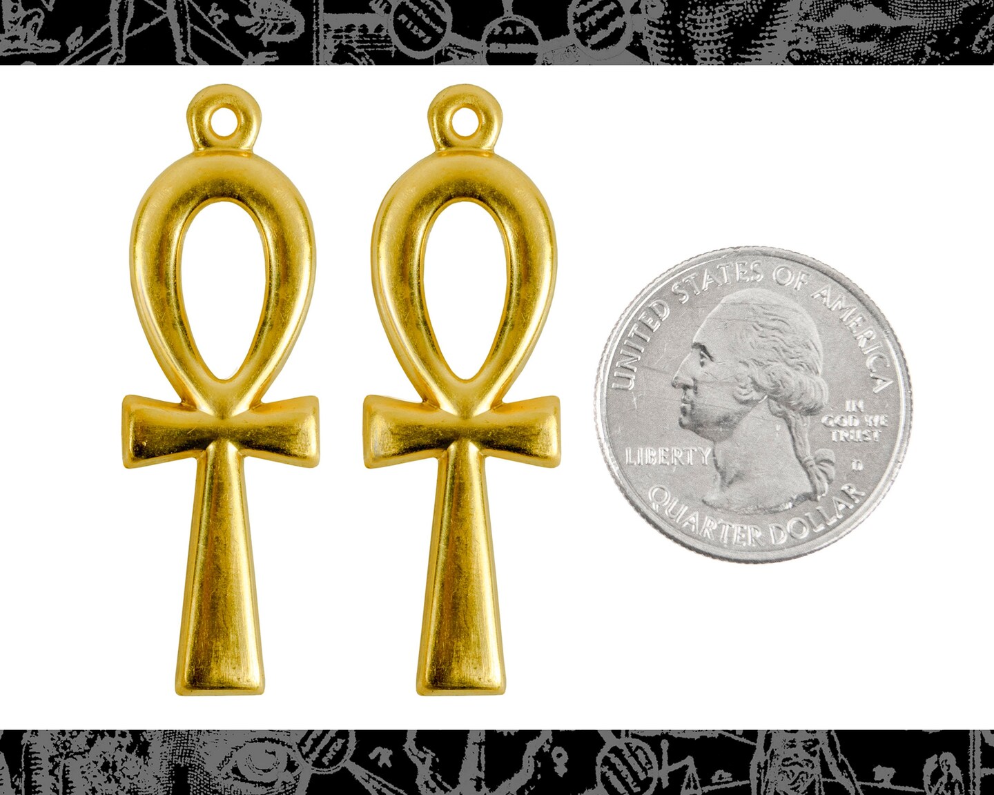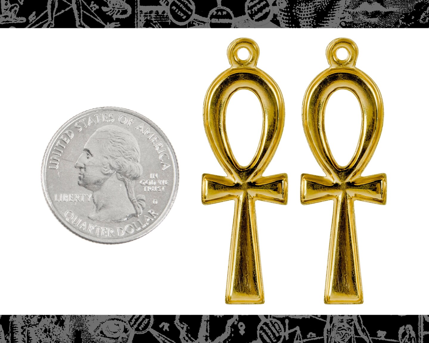 Raw Brass Extra Large Ankh Pendants - Set of Two - B-P61