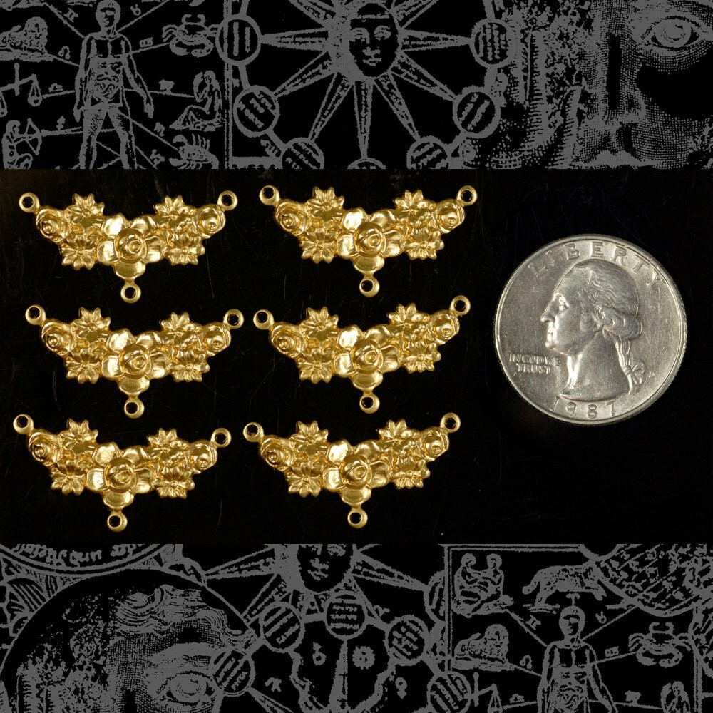 Raw Brass Floral Spray Three Ring Connectors - Set of Six - XXX - B-3C11