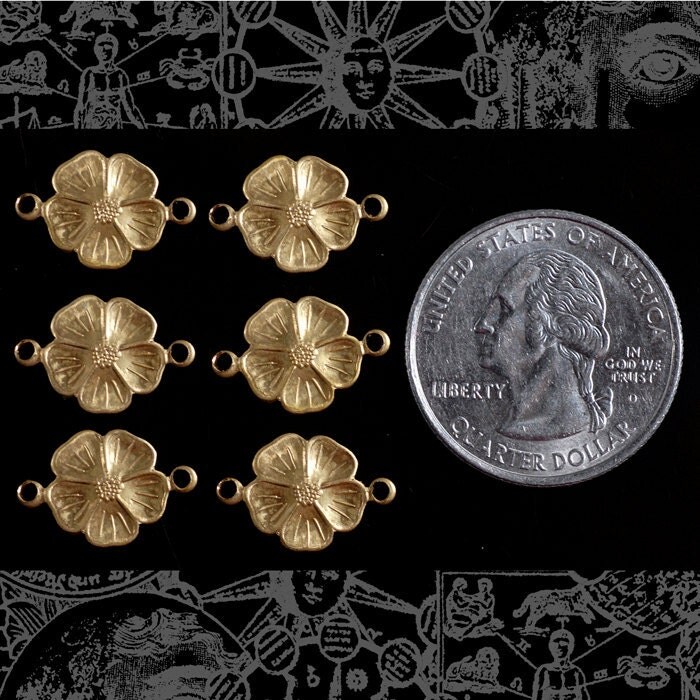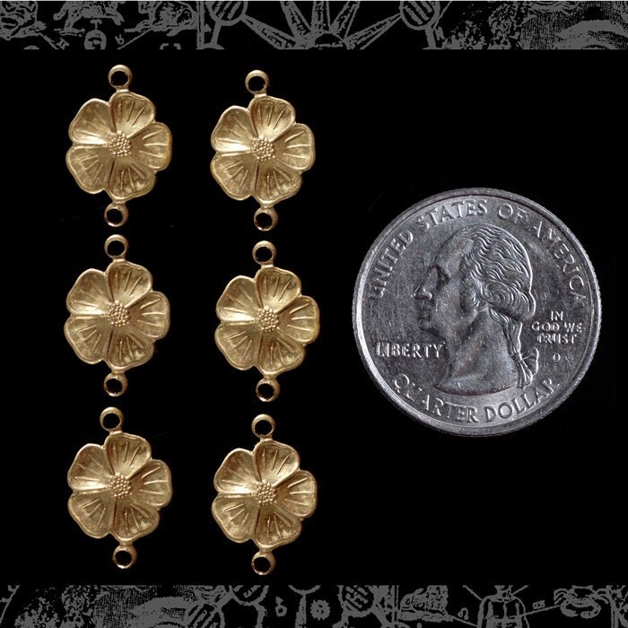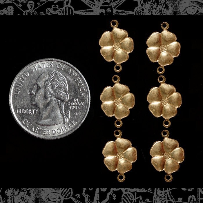 Raw Brass Flower Two Way Connectors - Set of Six - B-2C35