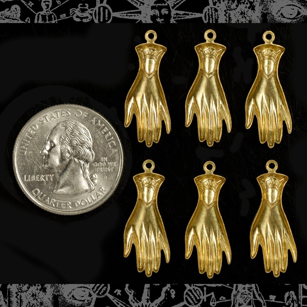 Raw Brass Hand Charms with Ring on Wrist - Set of Six - B-C157