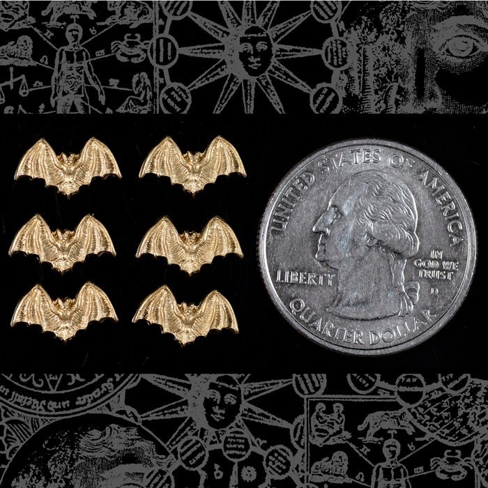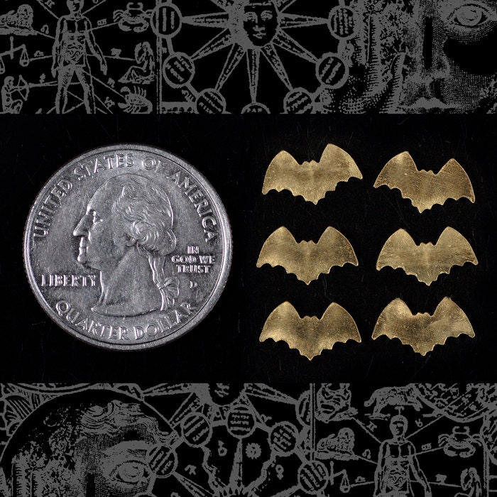 Raw Brass Itty Bitty Bat Stampings Charms - Set of Six - B-C92