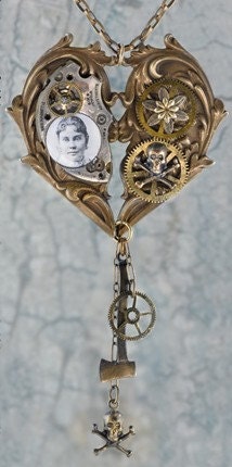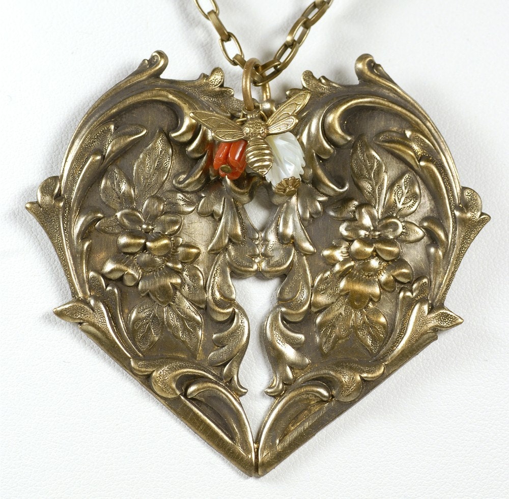 Raw Brass Large Floral Filigree Victorian Heart Pendant - B-P02