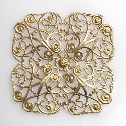 Raw Brass Large Square Filigree Wrap 50mm - B-W01