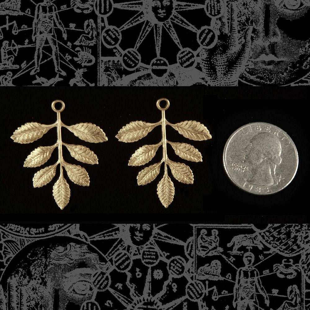 Raw Brass Leafy Branch Pendant - Set of Two - B-P15