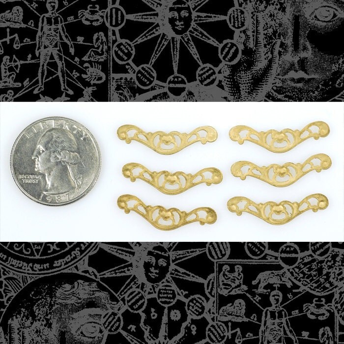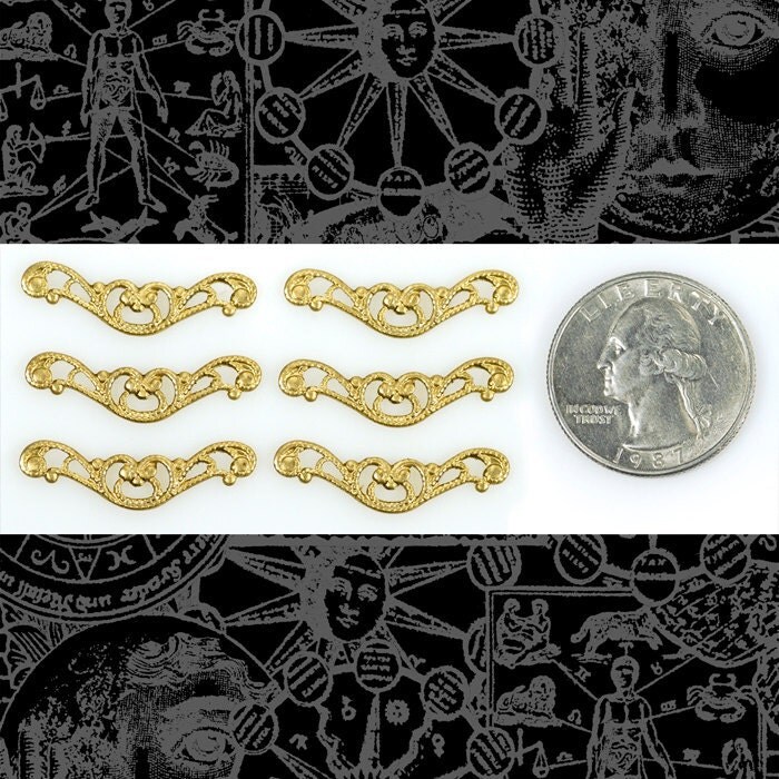 Raw Brass Long Filigree Three Way Connectors - Set of Six - B-3C07