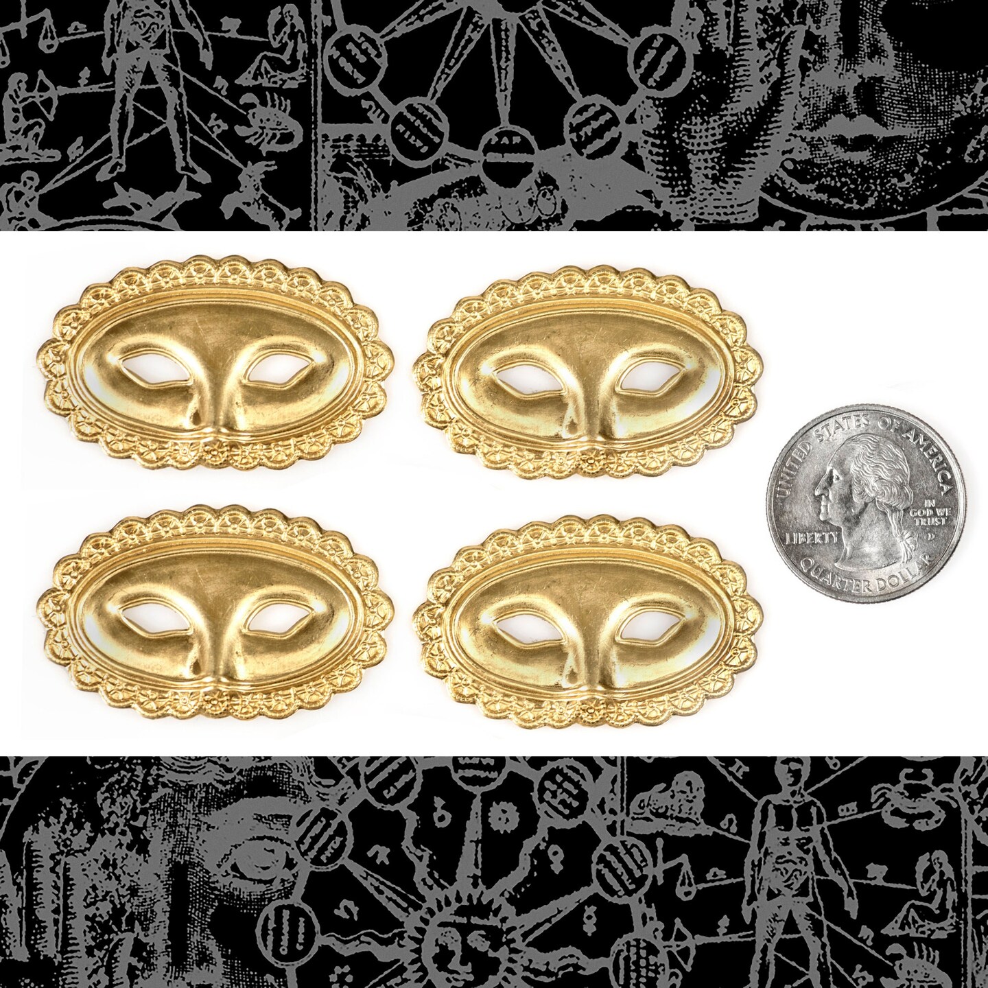 Raw Brass Medium Mask Charms - Set of Four - B-C215