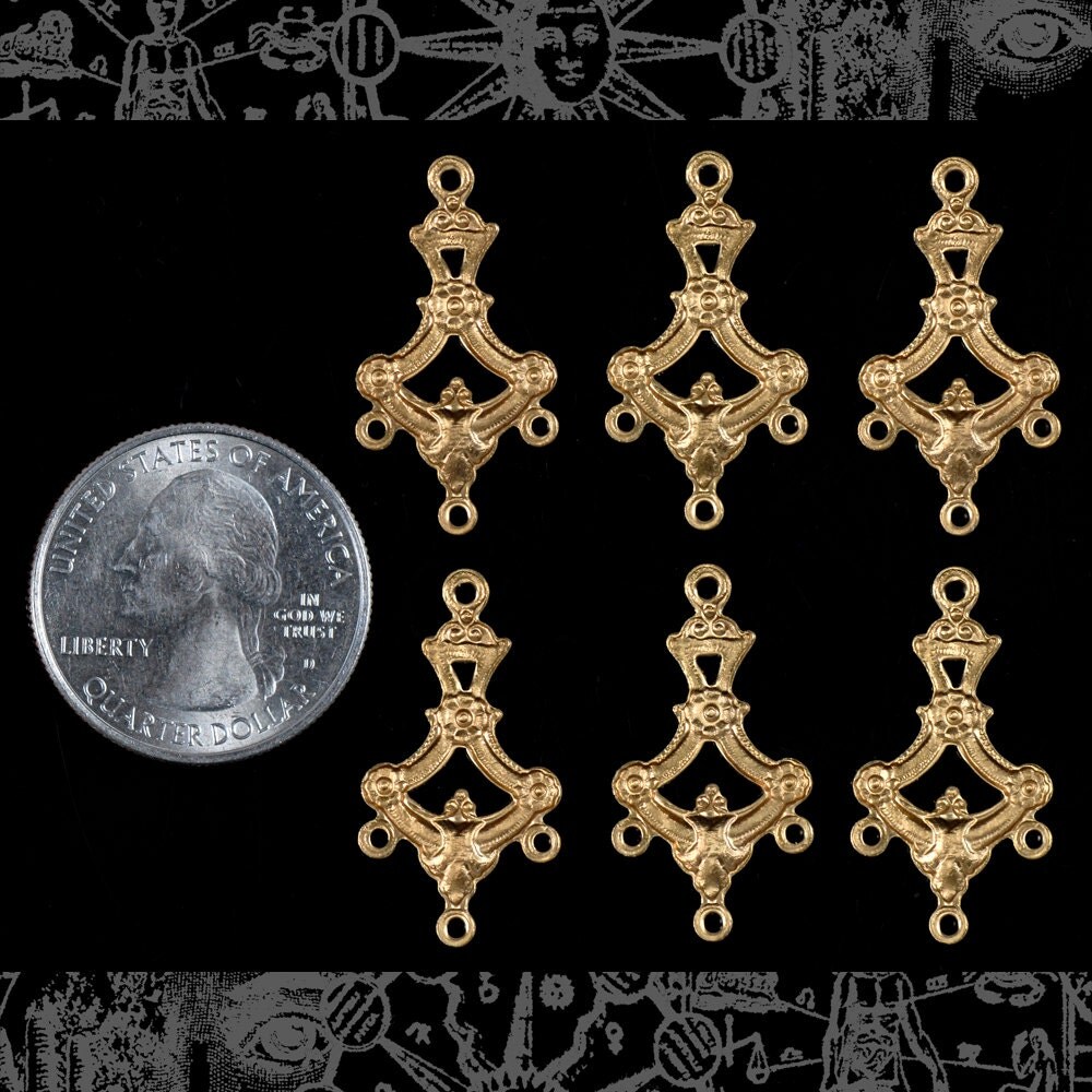 Raw Brass Ornate Floral Branch Four Way Connectors - Set of Six - B-4C08