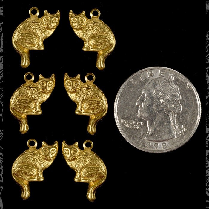 Raw Brass Sitting Cat Charms - Three Sets of Two Facing Each Other - B-C60