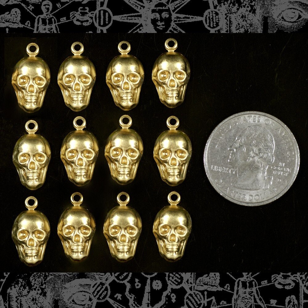 Raw Brass Skull Charms - Set of Twelve - B-C07