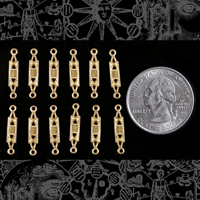 Raw Brass Small Bar Two Ring Connectors - Set of Twelve - B-2C57