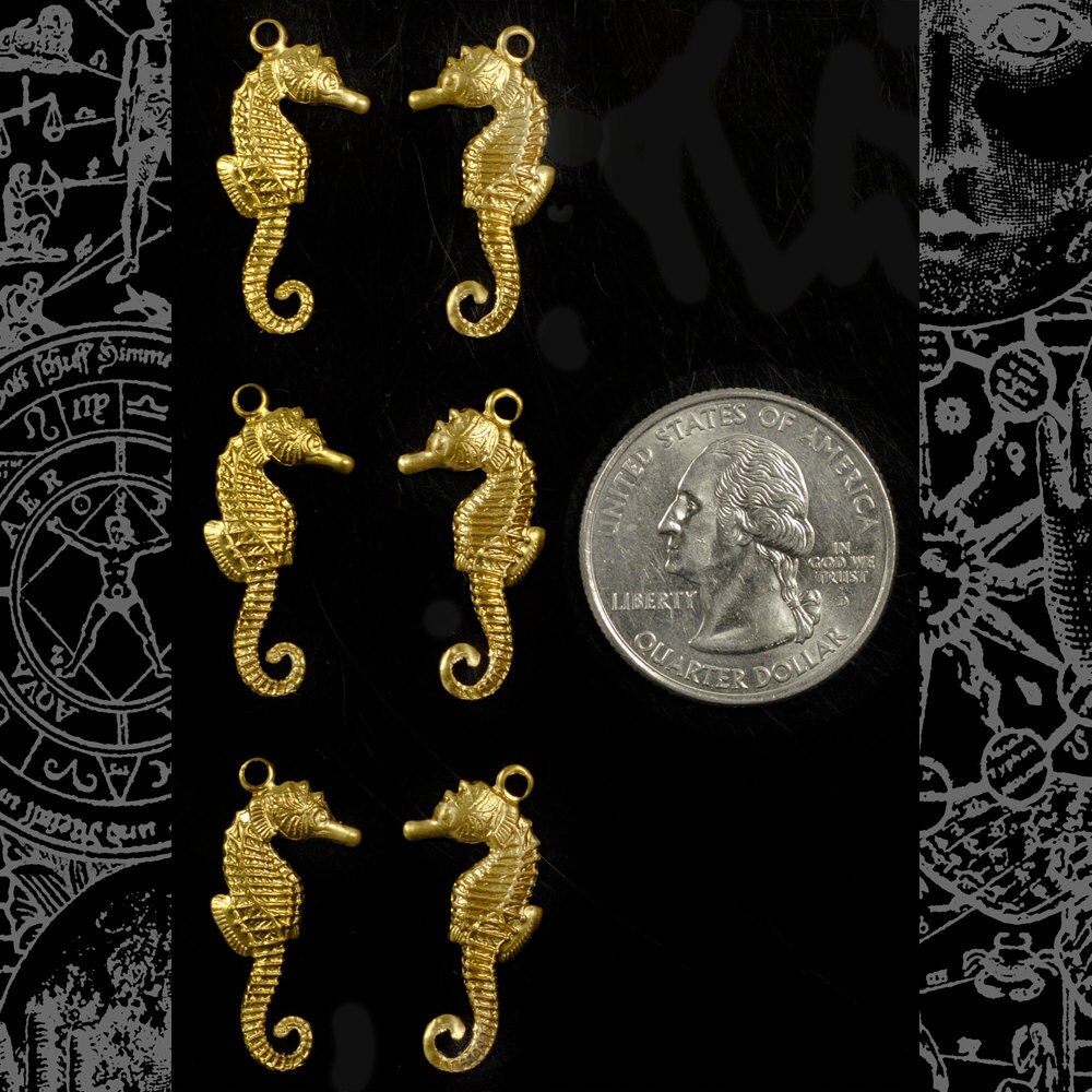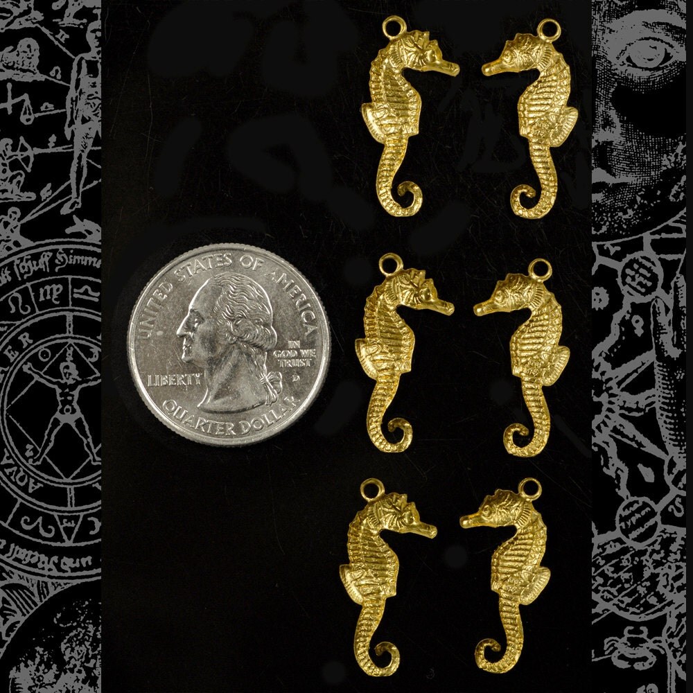 Raw Brass Small Flat Sea Horse Charms - Set of Six - B-C156