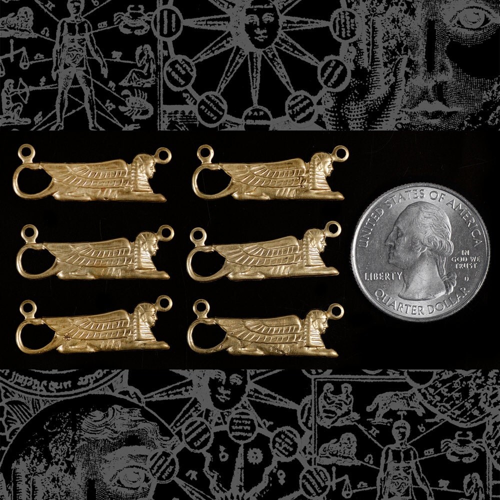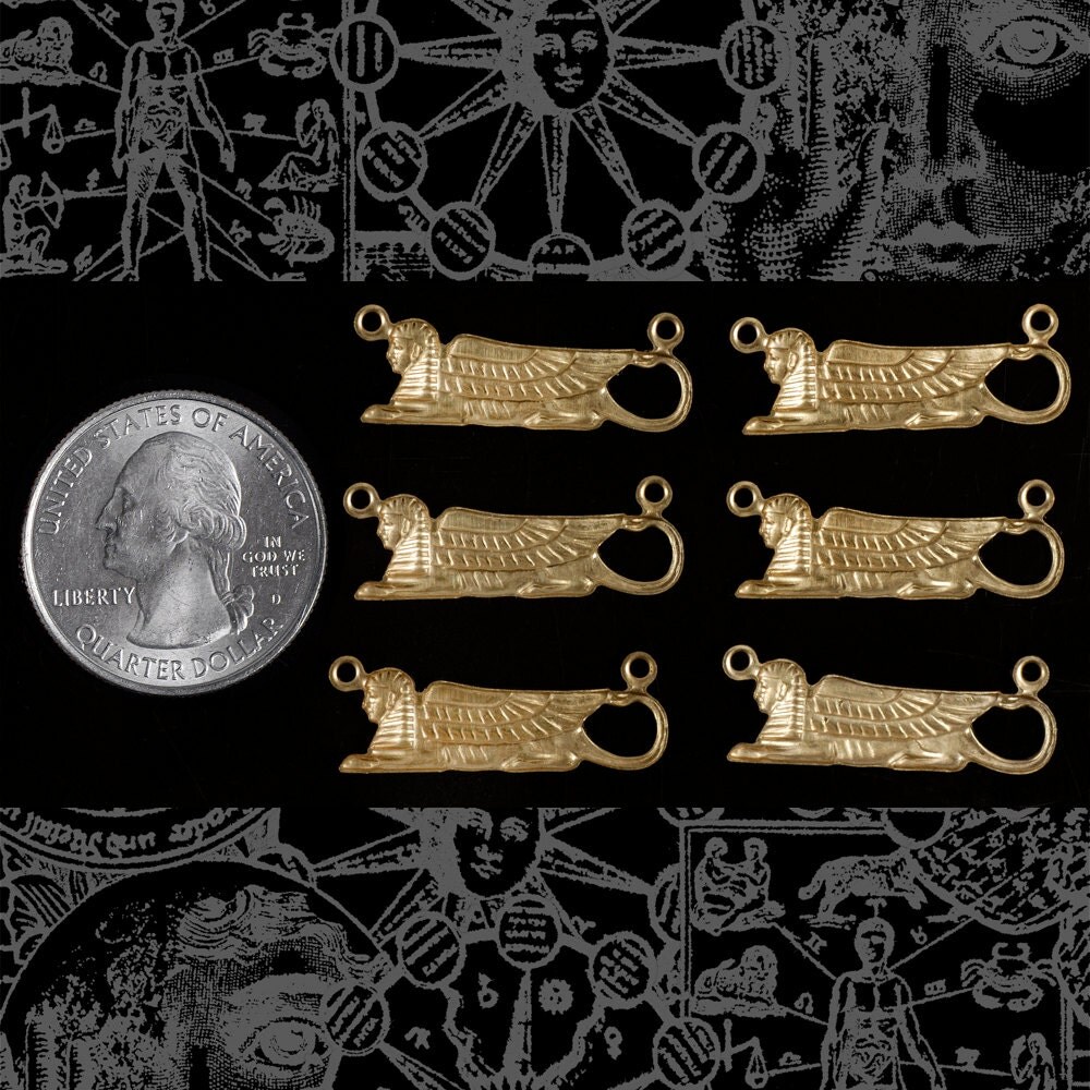 Raw Brass Sphinx Two Ring Connectors - Set of Six - B-2C64