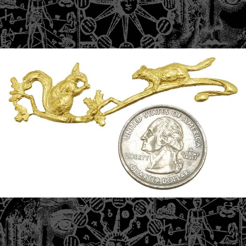 Raw Brass Squirrels on a Tree Stamping Pendant - B-P23