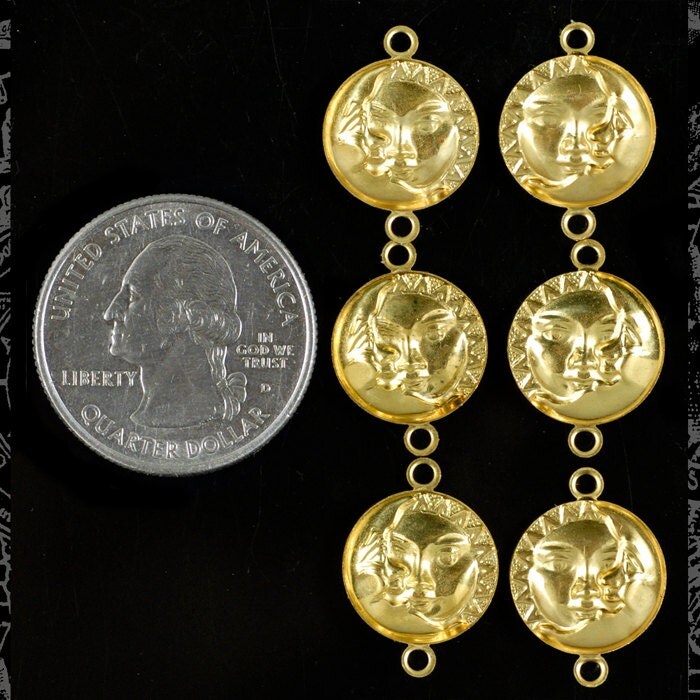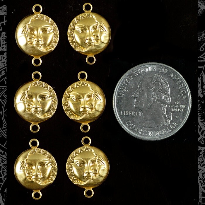 Raw Brass Sun and Moon Connectors - Set of Six - B-2C42