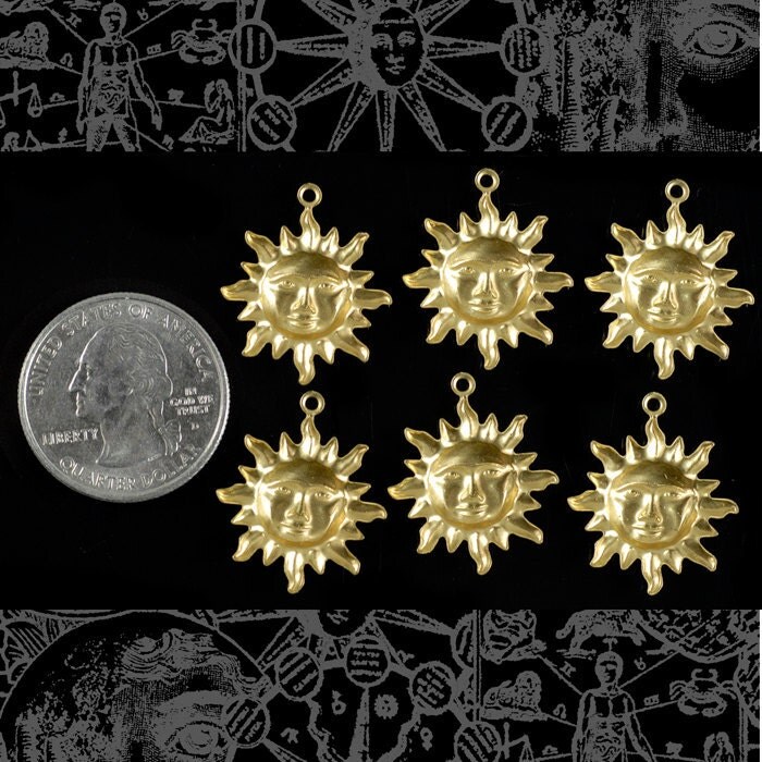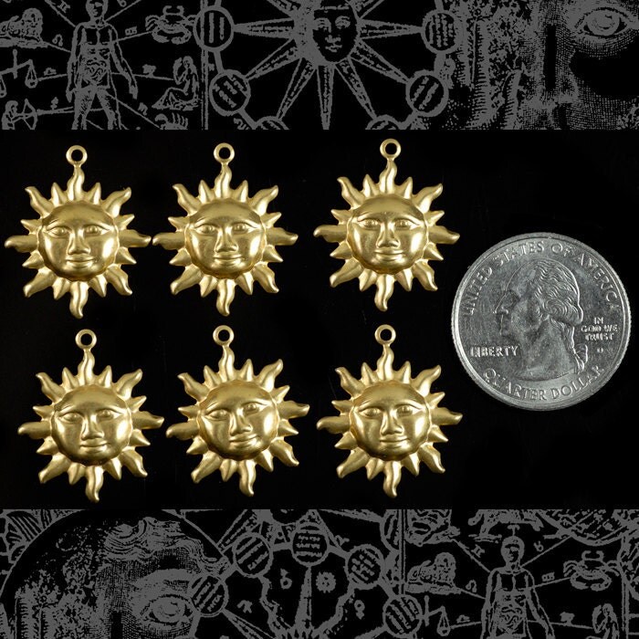 Raw Brass Sun Charms - Set of Six - B-C81