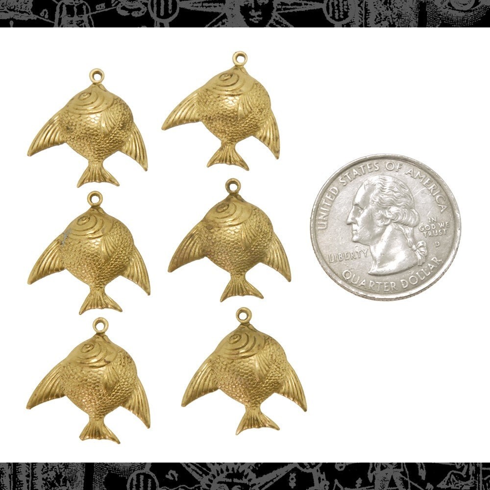 Raw Brass Sushi  Fish Charms - Set of Six  - B-C28