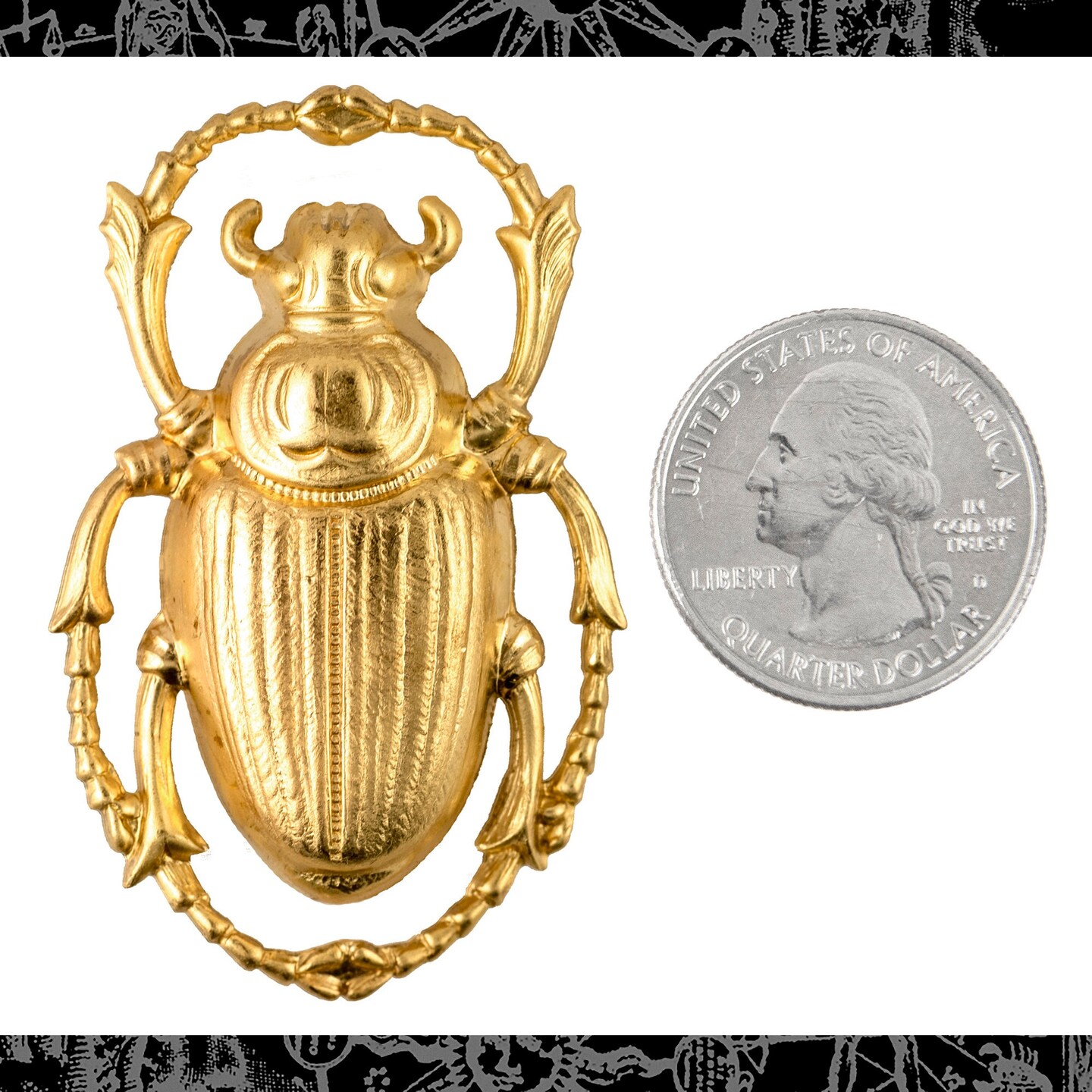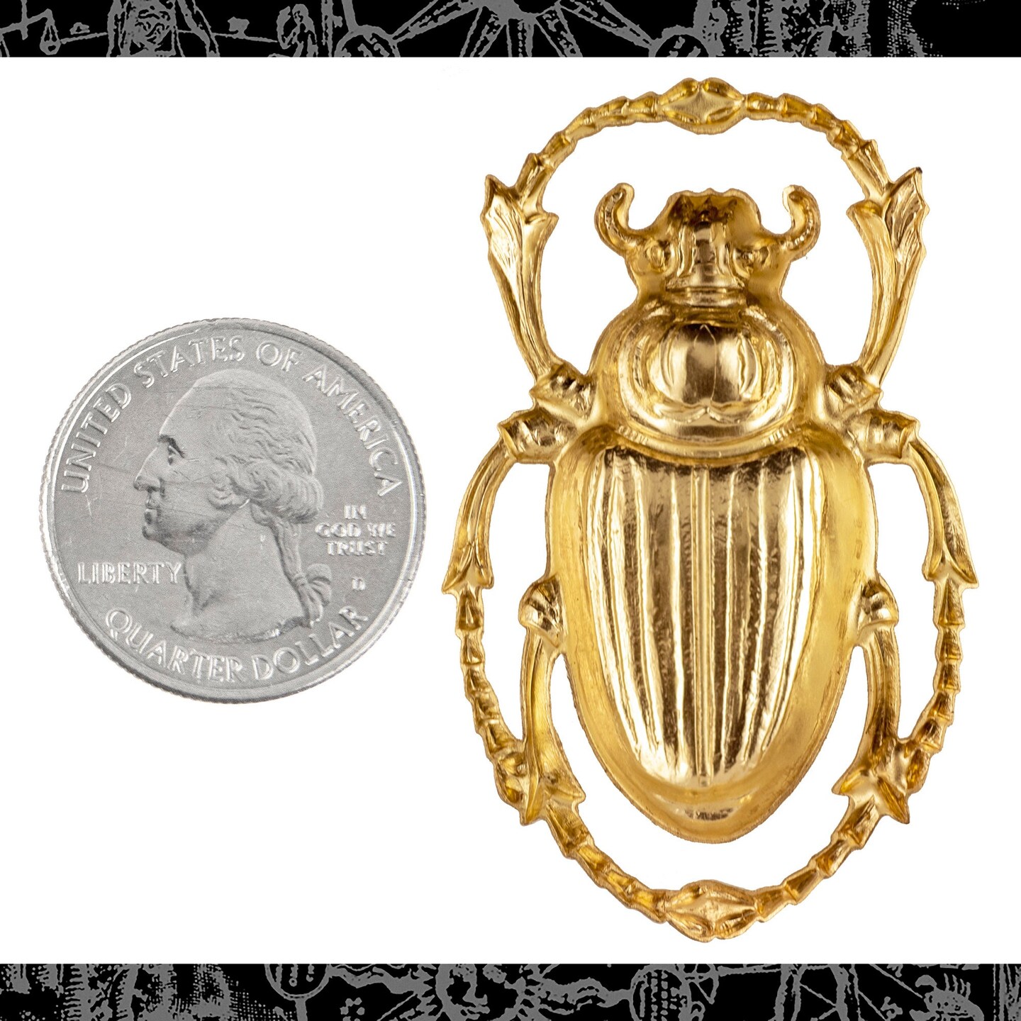 Raw Brass Very Large Scarab Beetle Pendant - One - B-P117