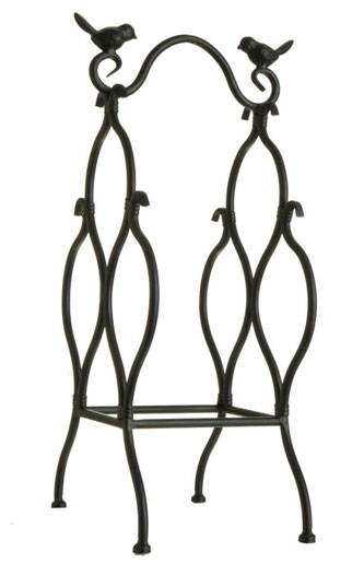 Raz 18" Antique-Style Black Table Top Wine Rack with Perched Birds - 3 Bottle Storage