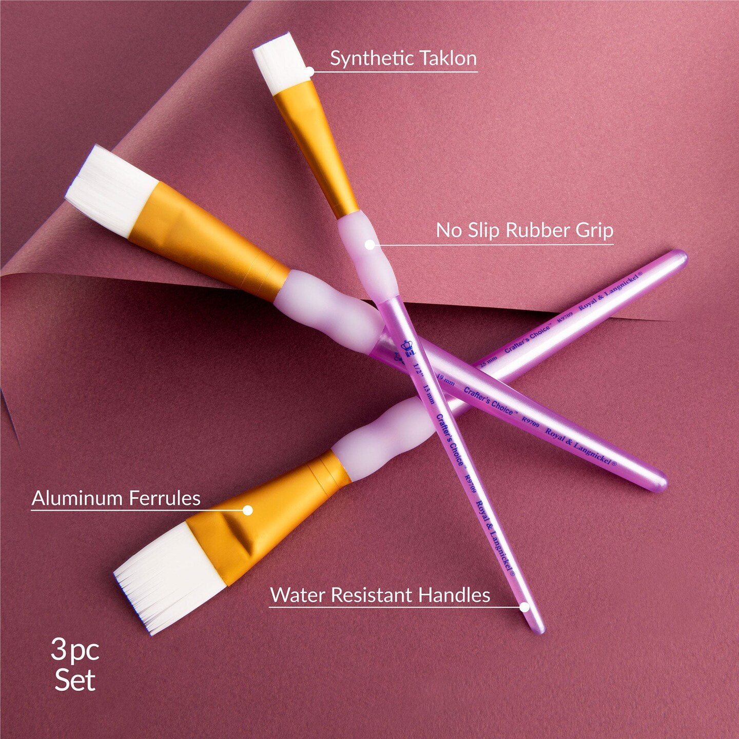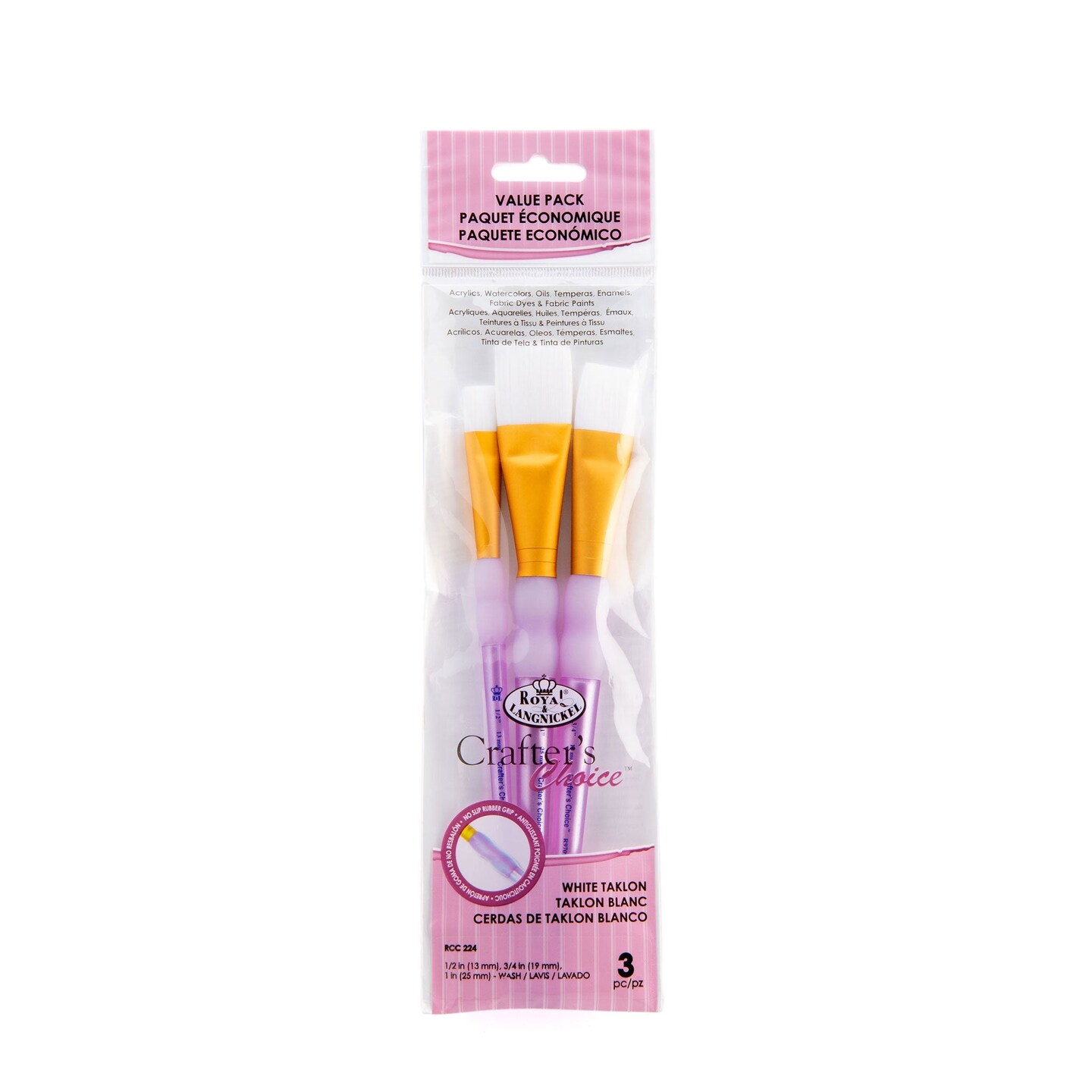 RCC 224 | Crafter's Choice™ 3pc White Taklon Wash Brush Set