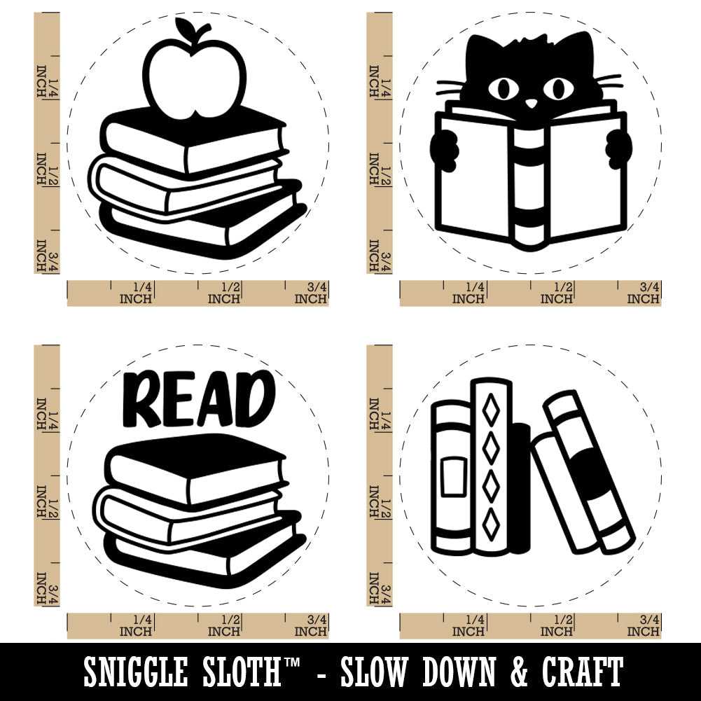 Read Reading Stack of Books Library School Cat Rubber Stamp Set for Stamping Crafting Planners