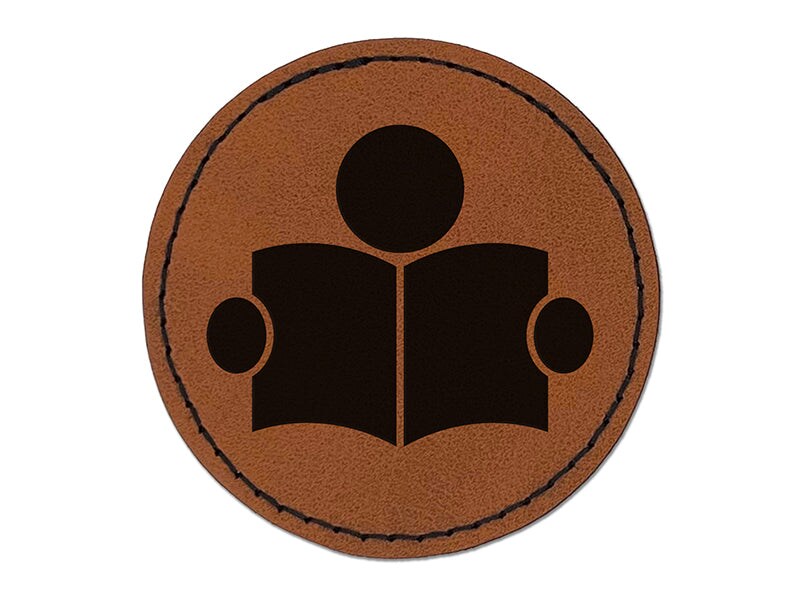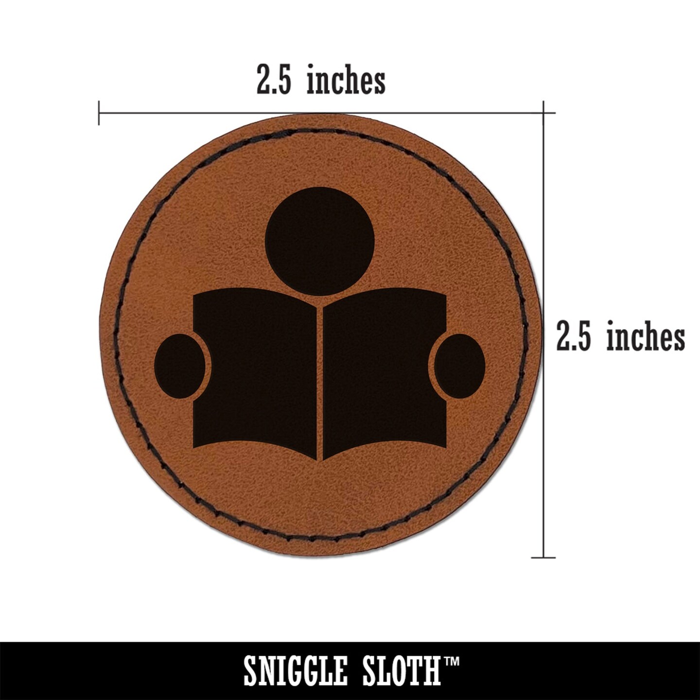 Reading Book Library Icon Round Iron-On Engraved Faux Leather Patch Applique - 2.5"