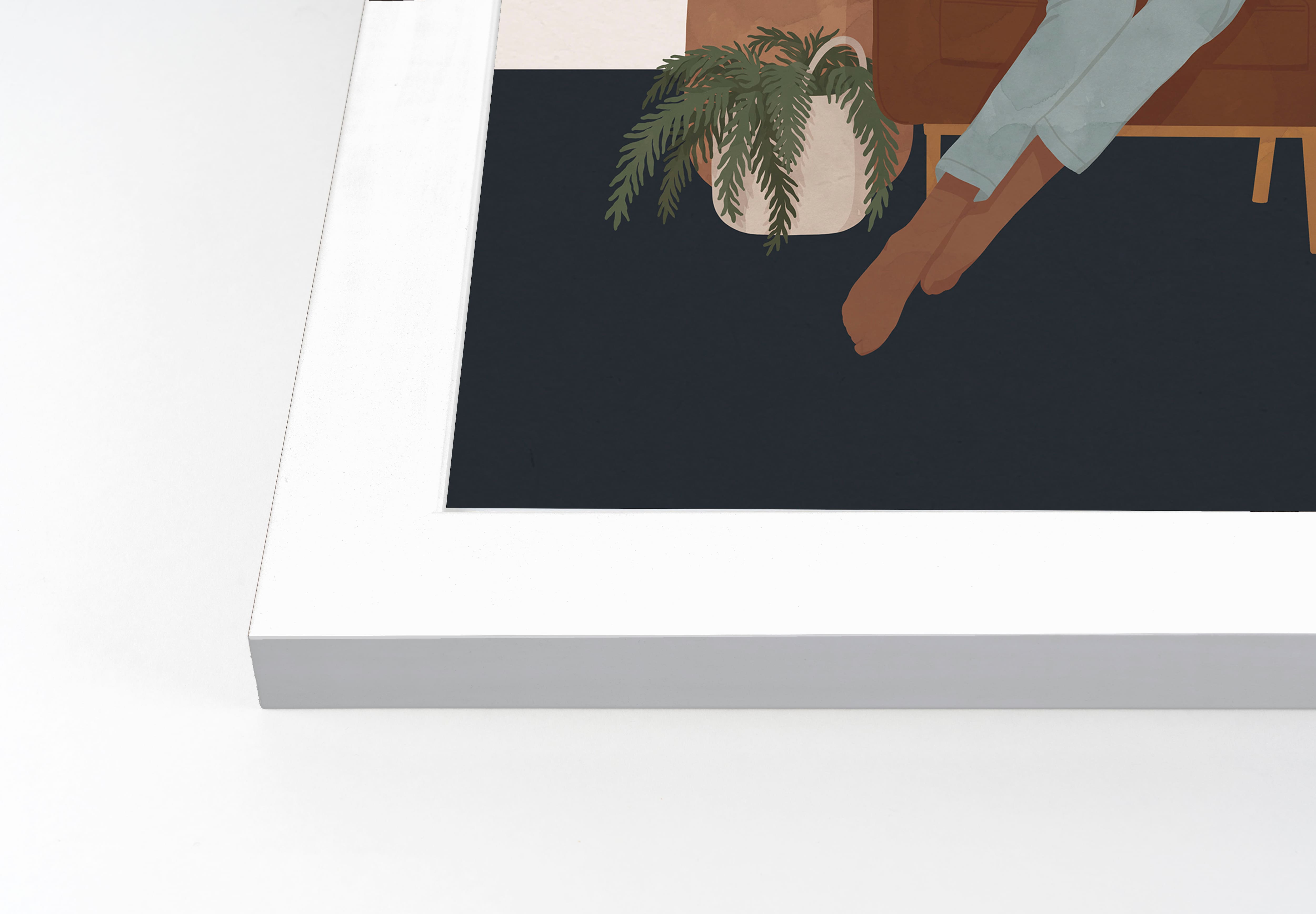 Reading Woman 16" x 16" White Framed Print Under Plexiglass