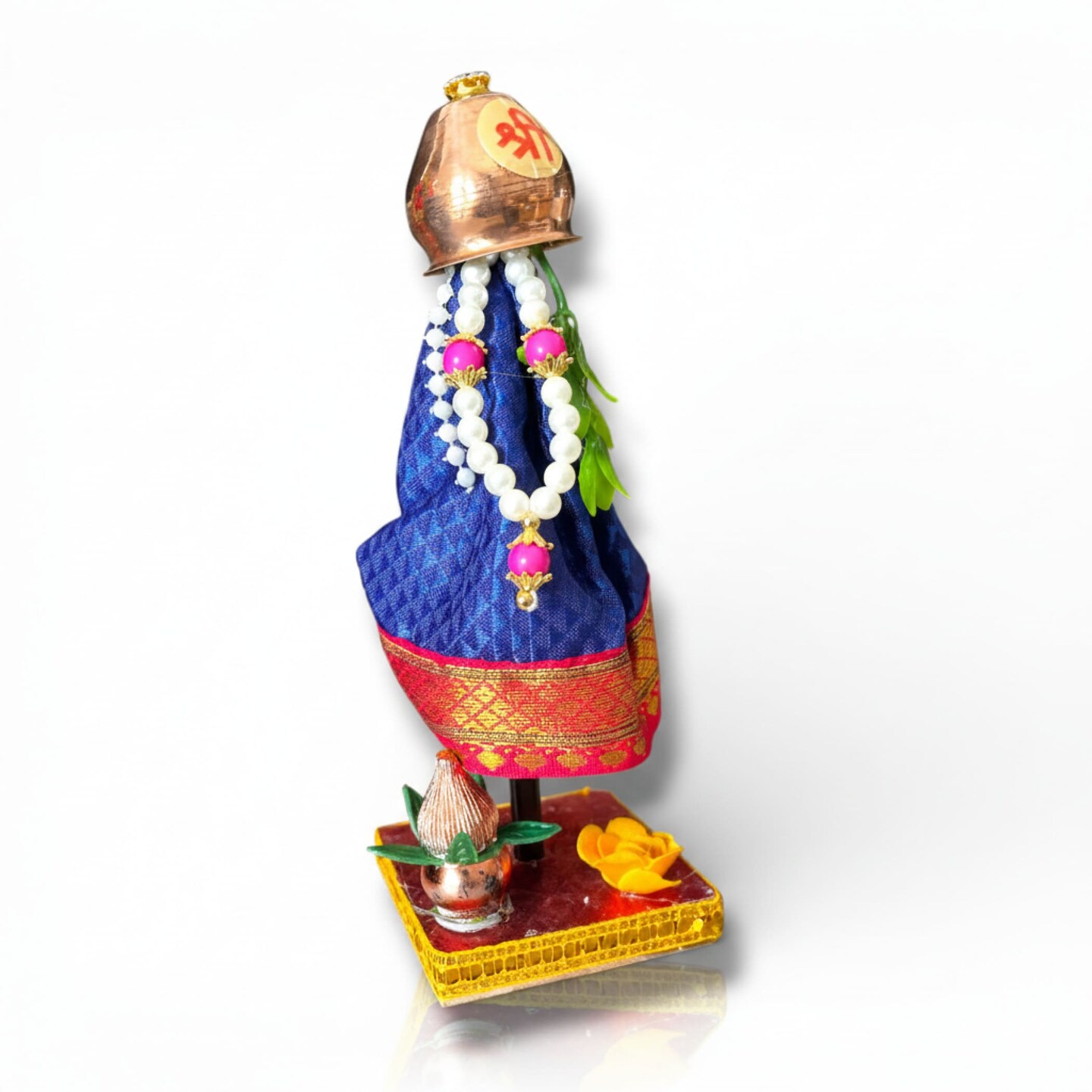 Readymade (7inch) Mini Gudi Padwa Decoration for Home | Traditional Gudi Showpiece with Plastic Gathi Mala - Maharashtrian New Year Gift