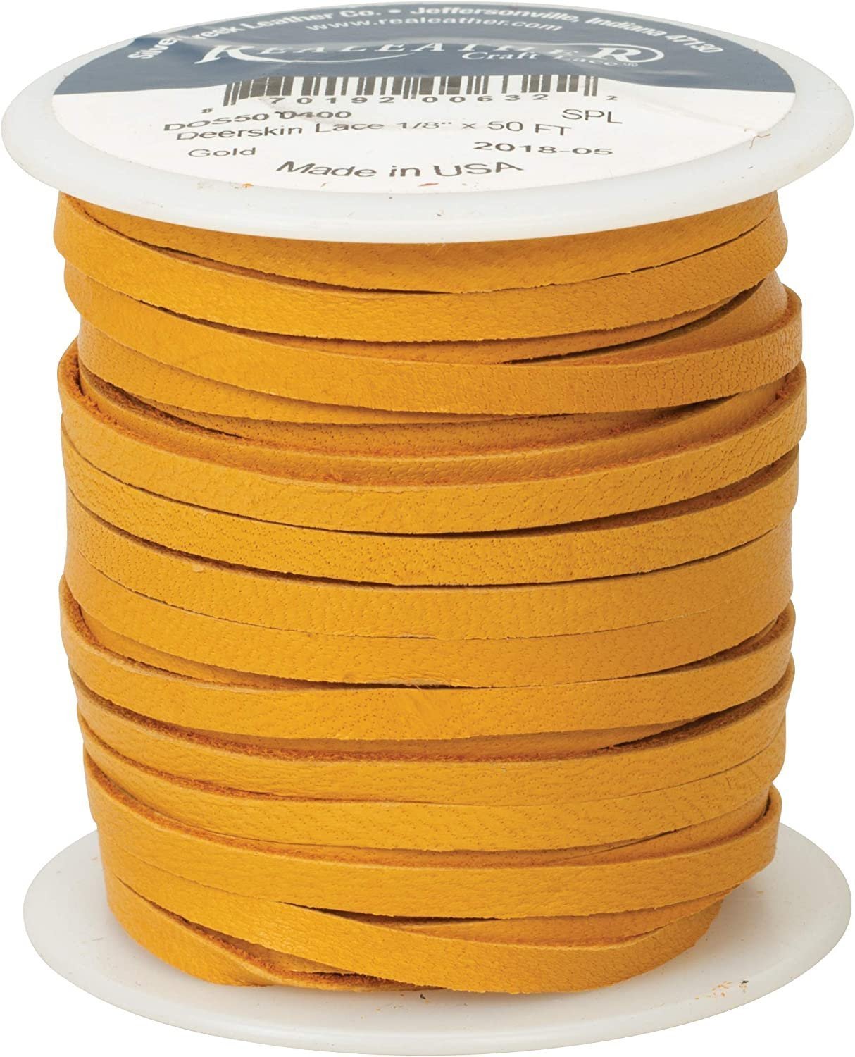 Realeather Deerskin Leather Lace | Size 3/16" x 50' (4.8mm x 15.24m) | 2/3 oz Thickness (.8-1.2mm)