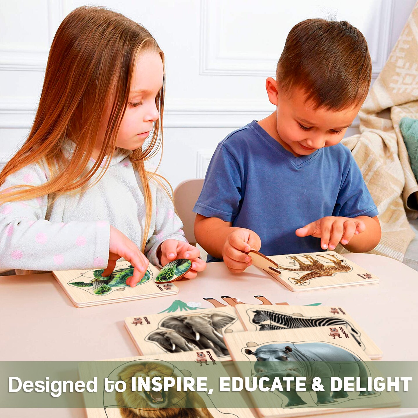 Realistic Wooden Puzzles for Toddlers | Safari Animals