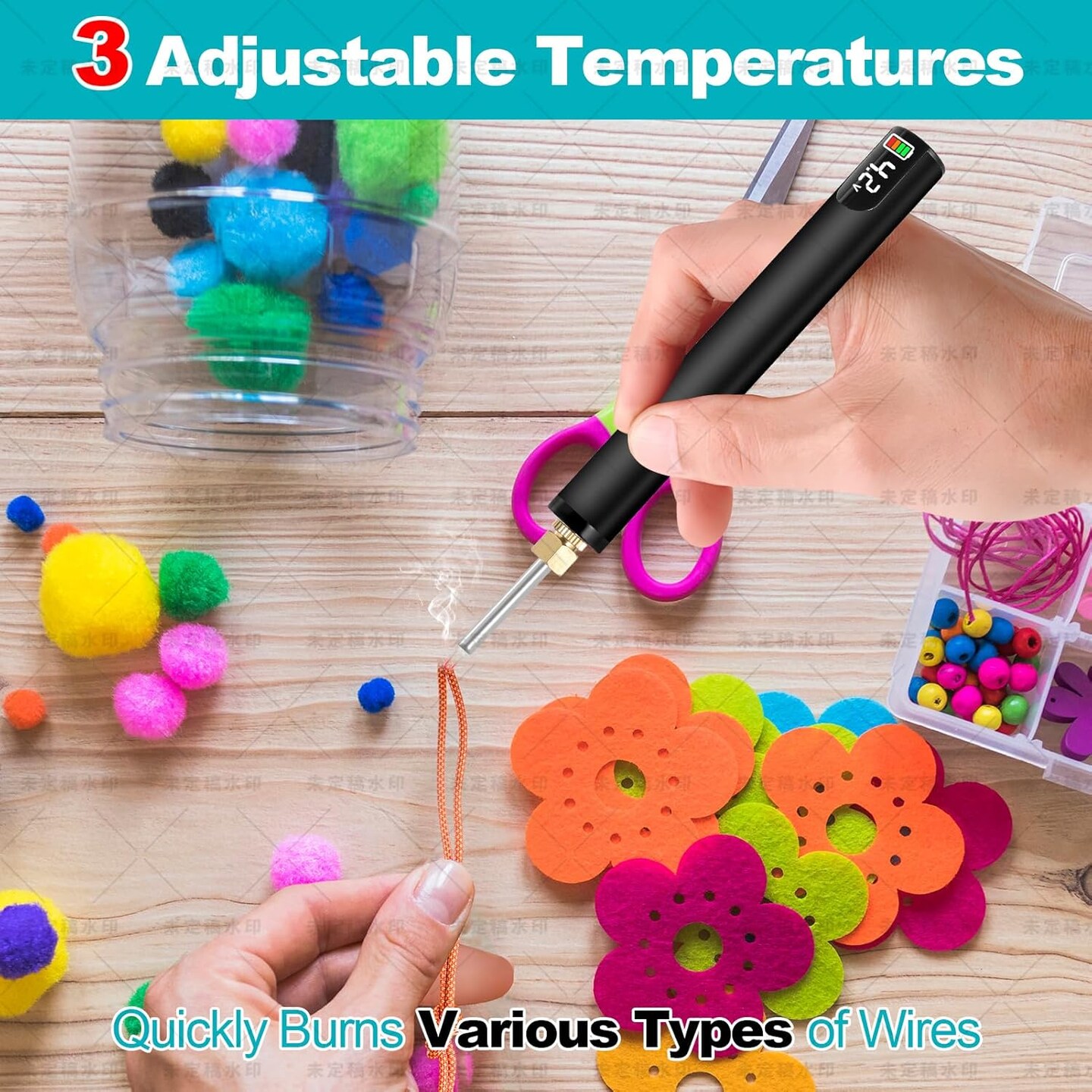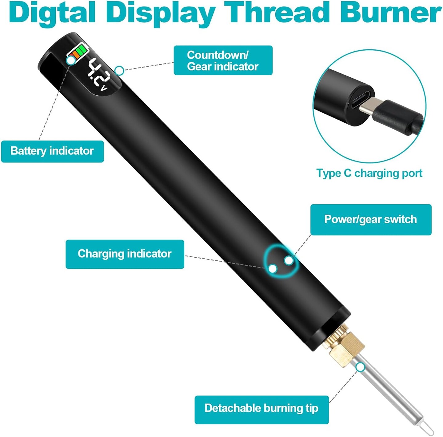 Rechargeable Thread Burner kit for Jewelry Making,Digital Thread Zapper Tool with 2 Replacement Tip,Burning Pen 3 Ajustable Temperature 330~450℃ for Beading,Leather Craft
