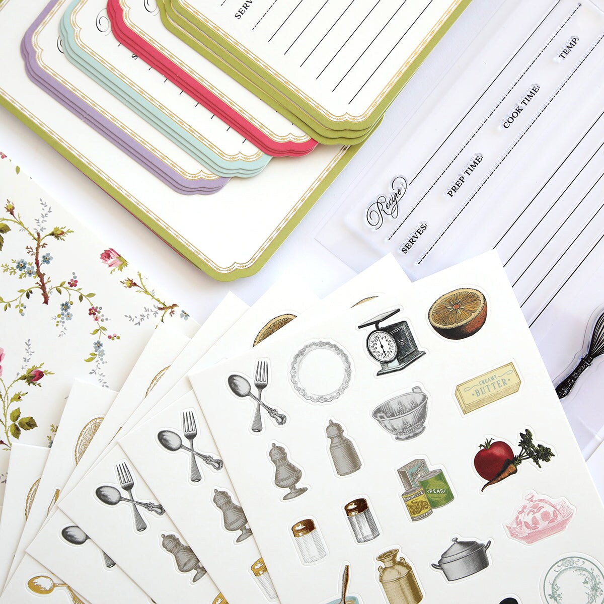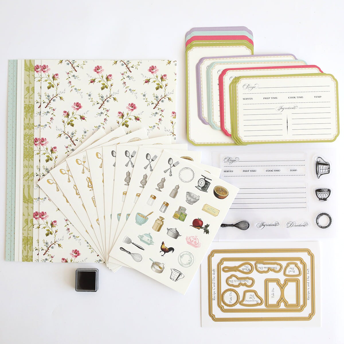 Recipe Card Stamps, Dies and Embellishments