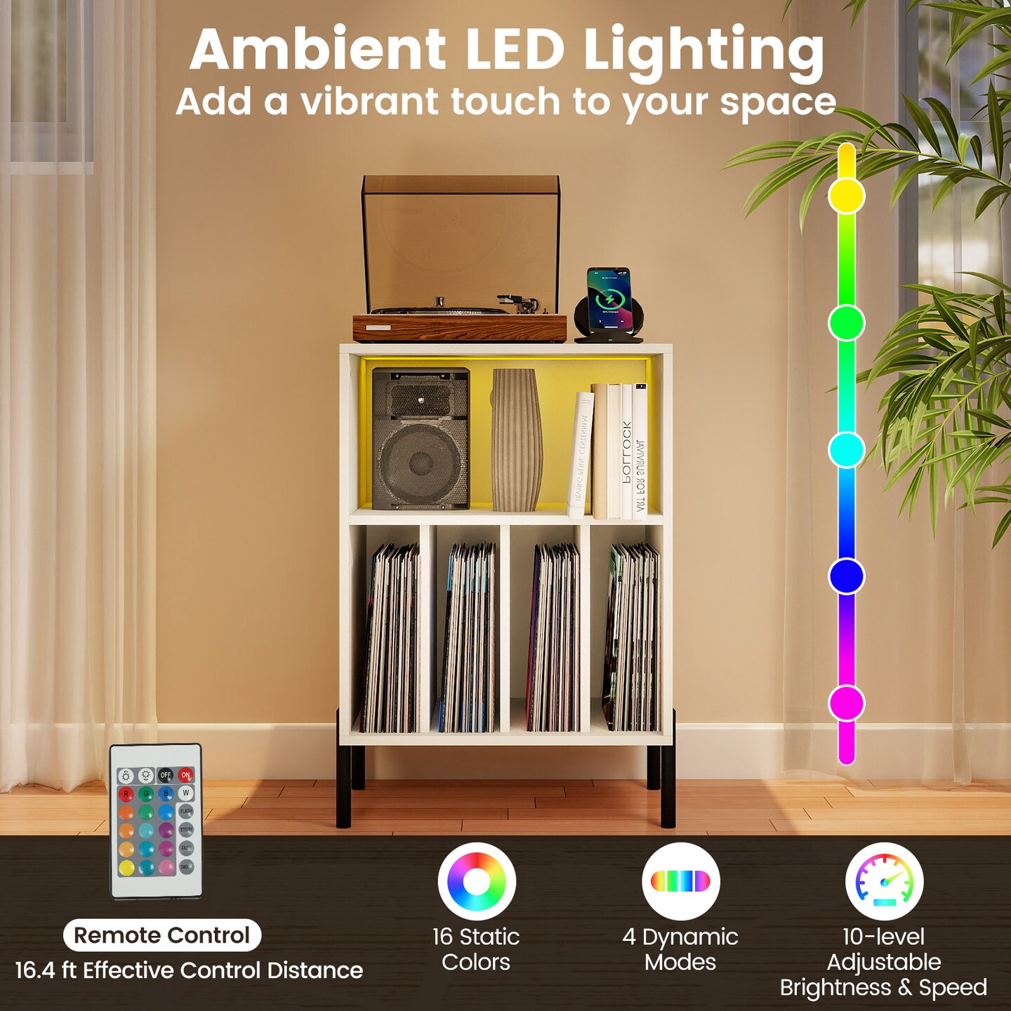 Record Player Stand with RGB LED Light Vinyl Storage Charging Station