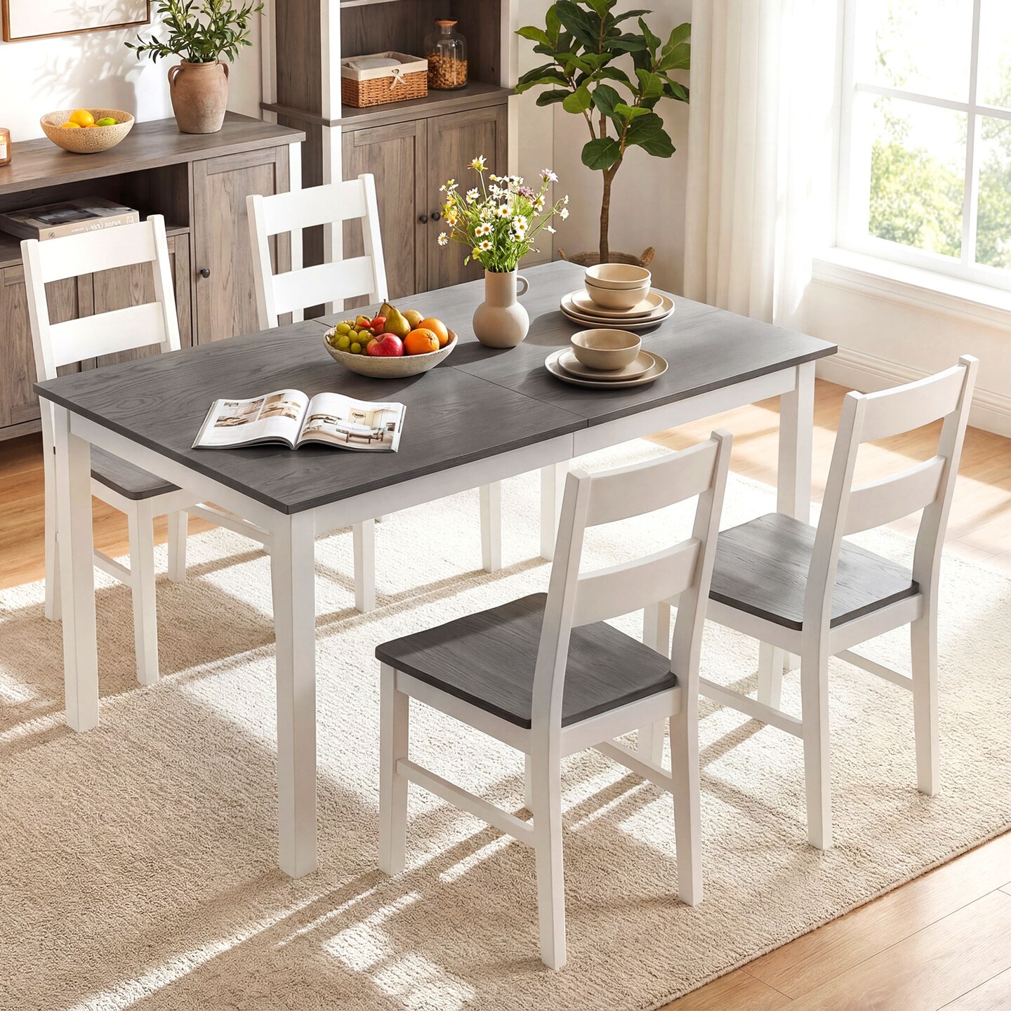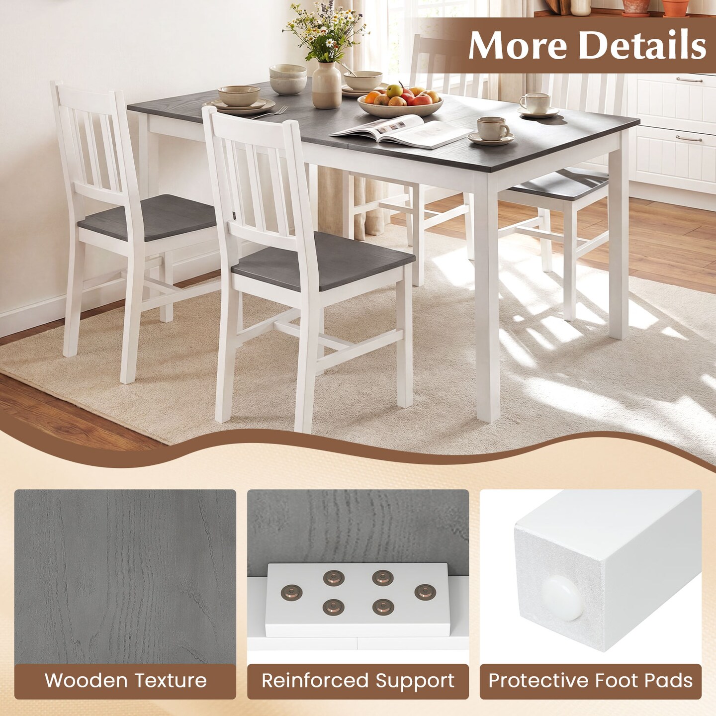 Rectangular 60-Inch Dinner Table with Solid Rubber Wood Legs