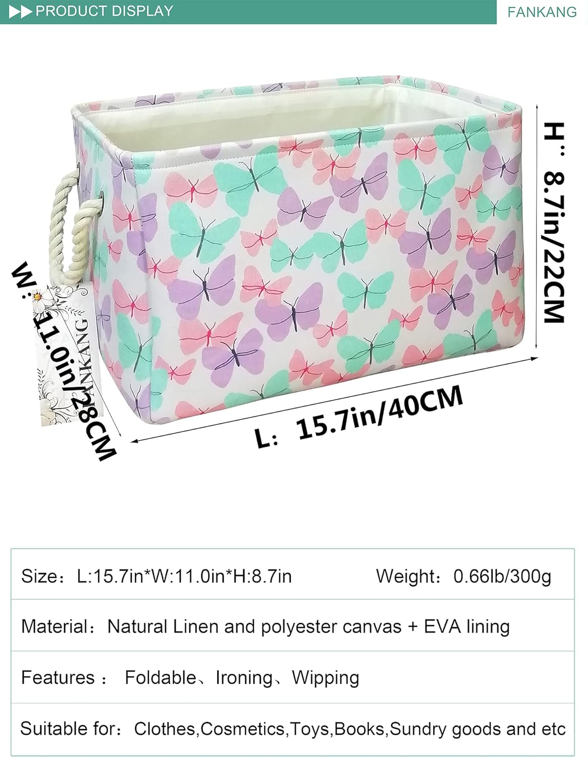 Rectangular Laundry Basket Nursery Storage Fabric Storage Bin Storage Hamper
