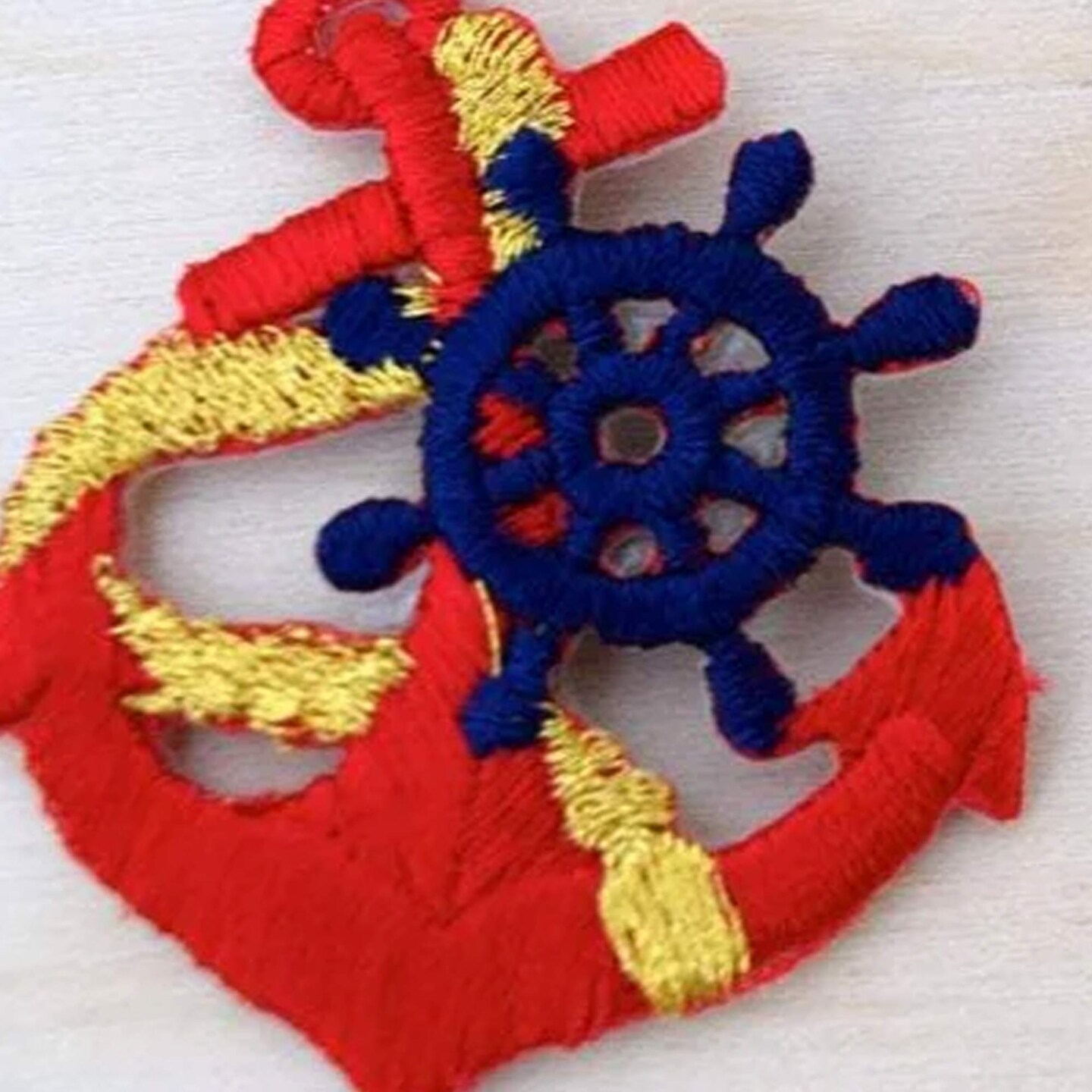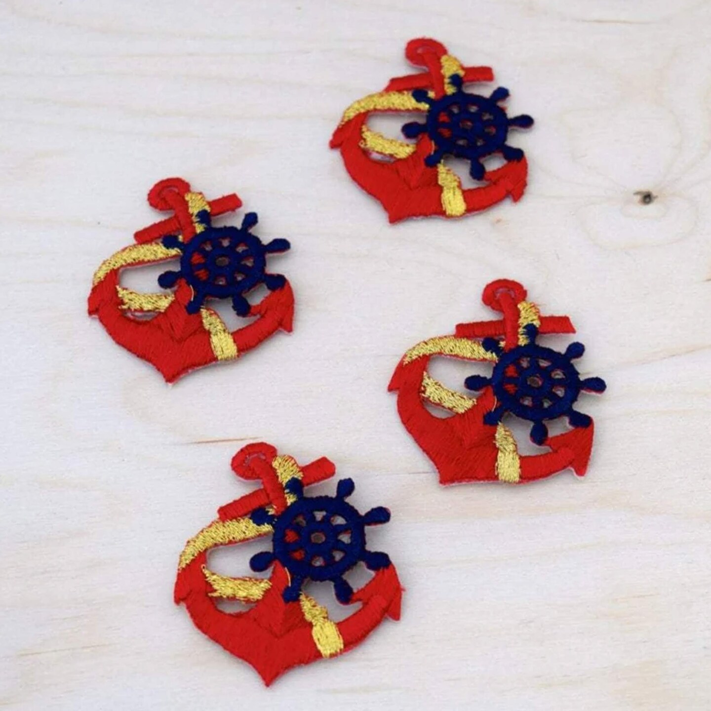 Red Anchor Patches Embroidered Nautical Applique with Ship Wheel Set of 2