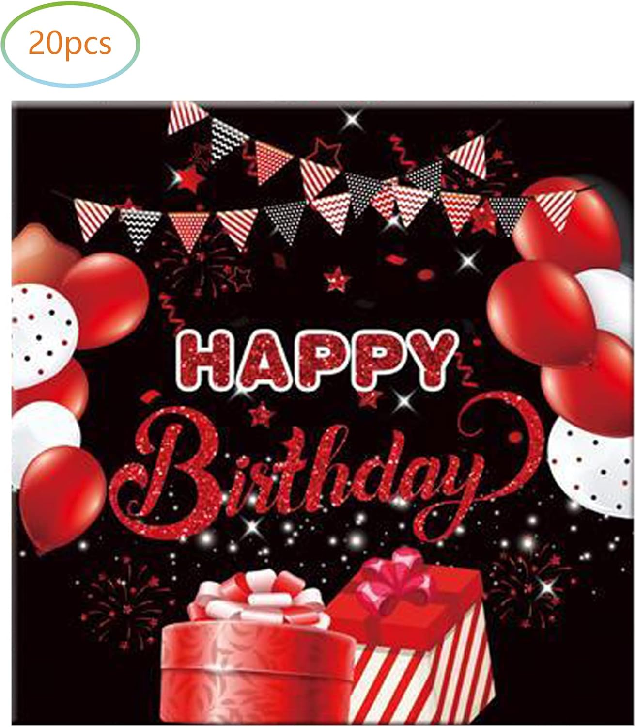 Red and Black Birthday Party Tableware Supplies Set, 20 Plates and 20 Napkins, Red Birthday Party Confetti Sprinkles Happy Birthday Party Decorations for Men Women