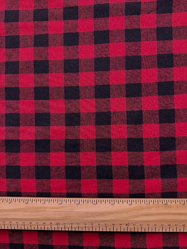 Red and Black Buffalo Plaid Yarn Dyed Flannel Fabric By the Yard