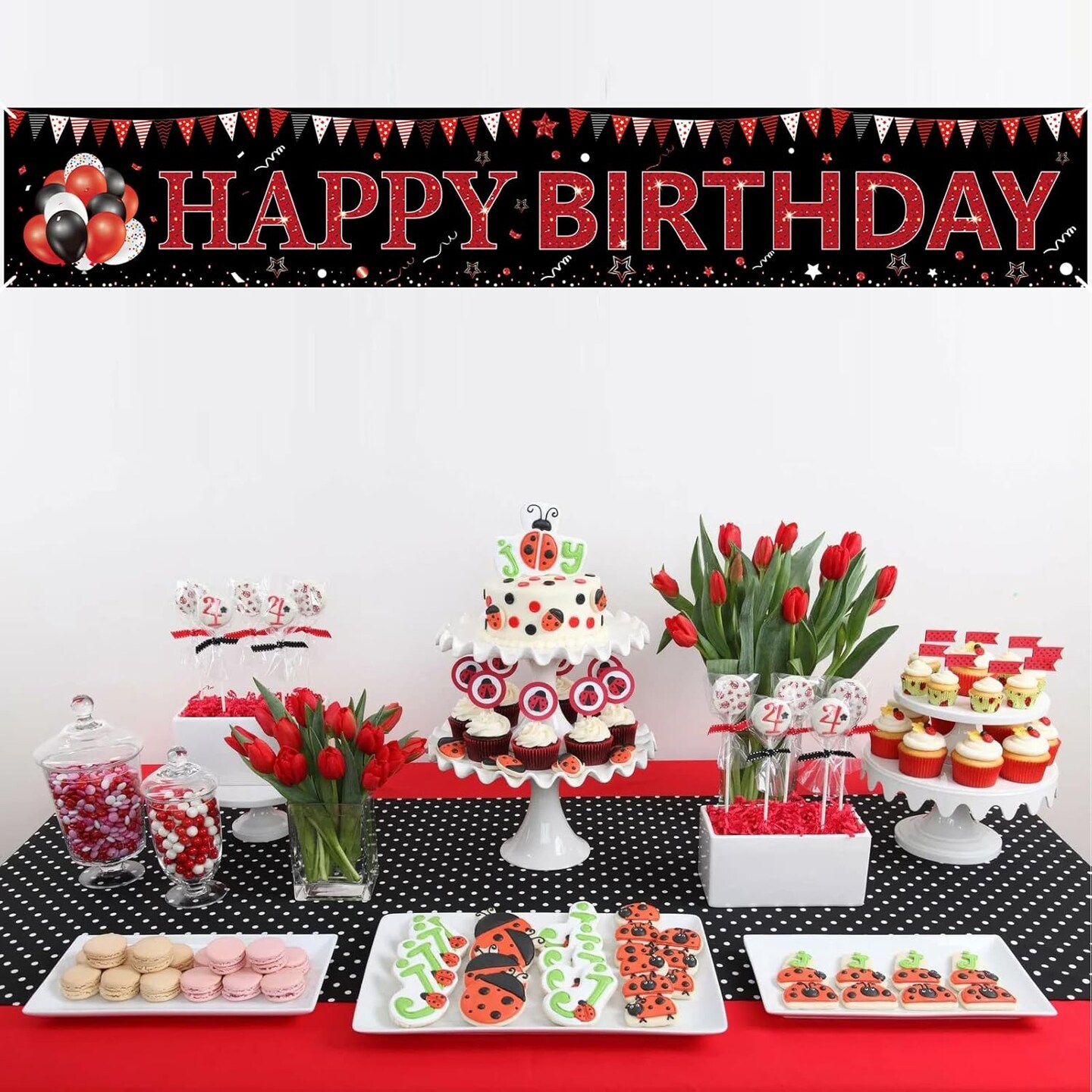 Red and Black Happy Birthday Banner Decorations, Large Red Black Happy Birthday Yard Banner Sign Party Supplies for Men Women