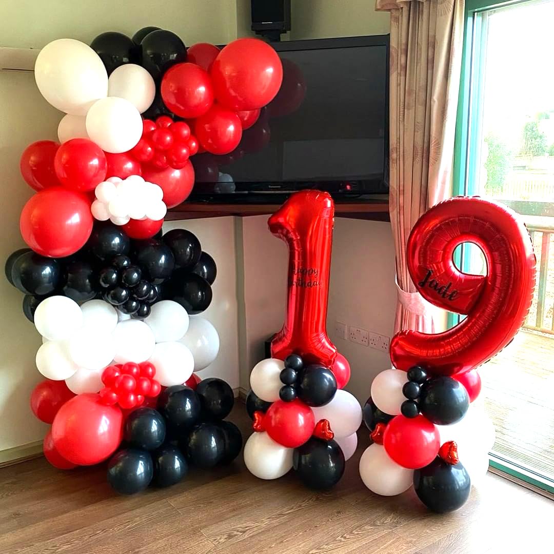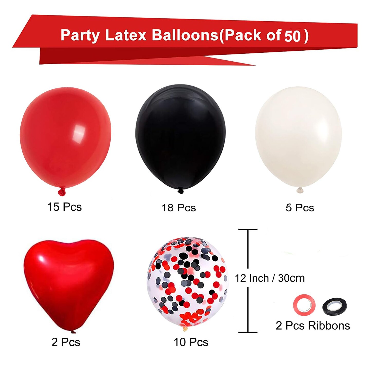 Red and Black Latex Balloons, 50Pcs 12inch Black Red White Party Balloons for Birthday,Wedding,Baby Shower,Casino Party, Race Car Party,Valentine's Day