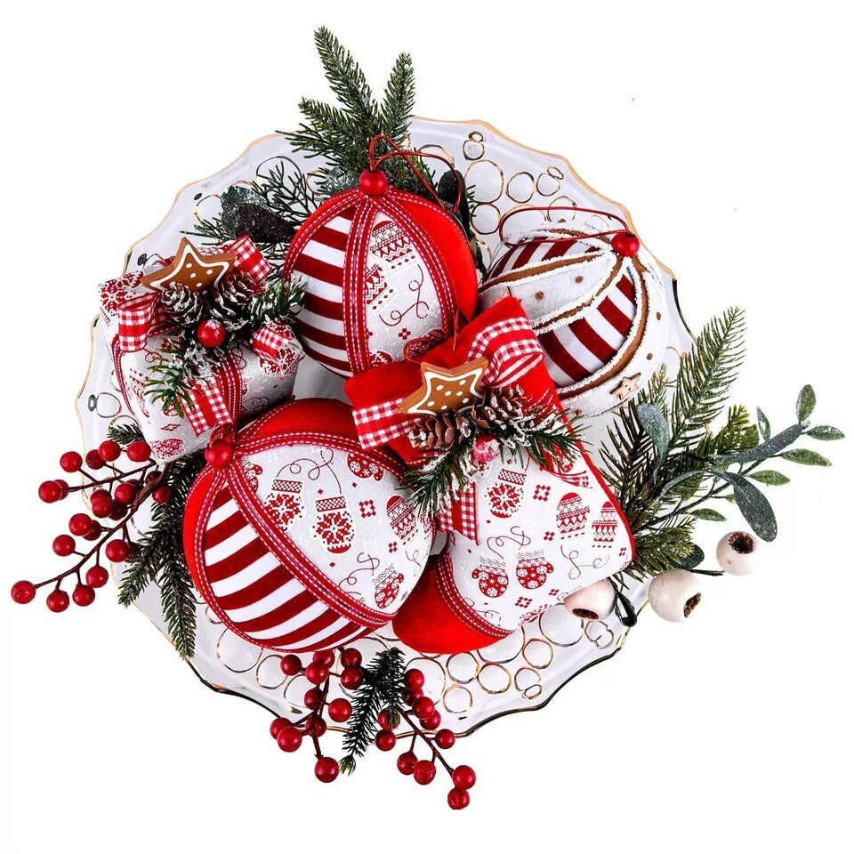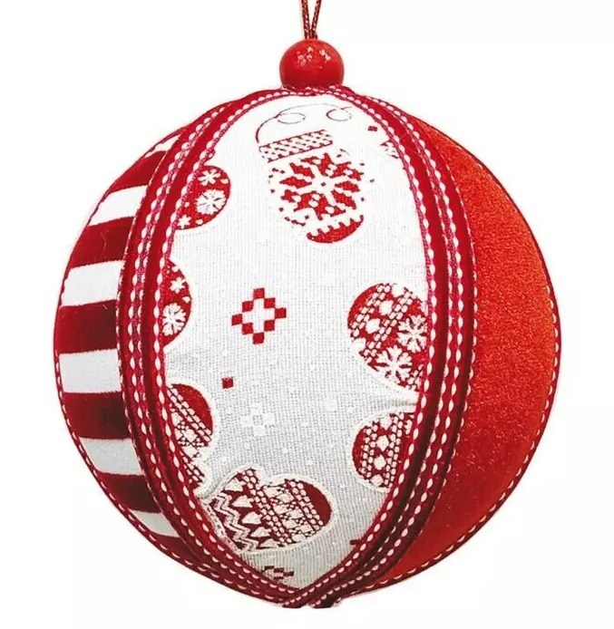 Red and White Fabric Christmas Tree Ornament, Holiday Bauble