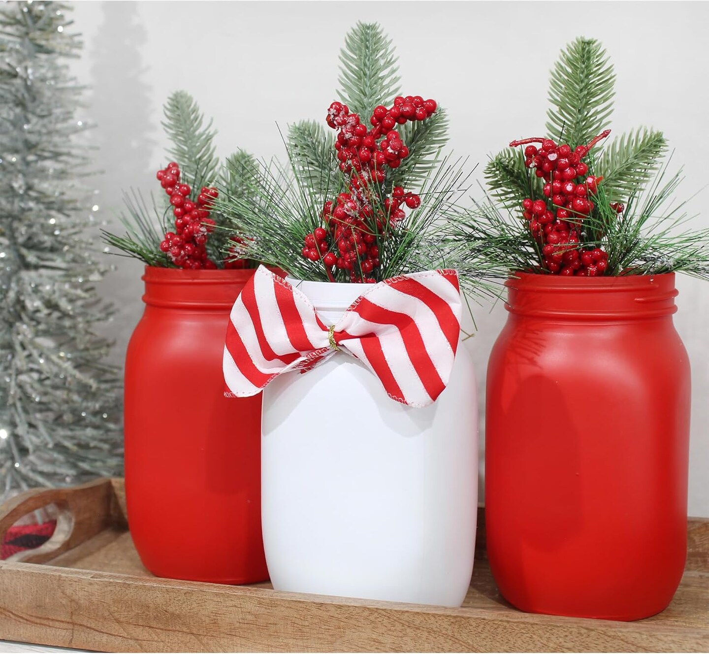 Red and White Mason Jars (Set of 3 Jars); Holiday Decor Colored Wide Mouth Mason Jars for Christmas, Valentine’s, 4th of July and Home Decor