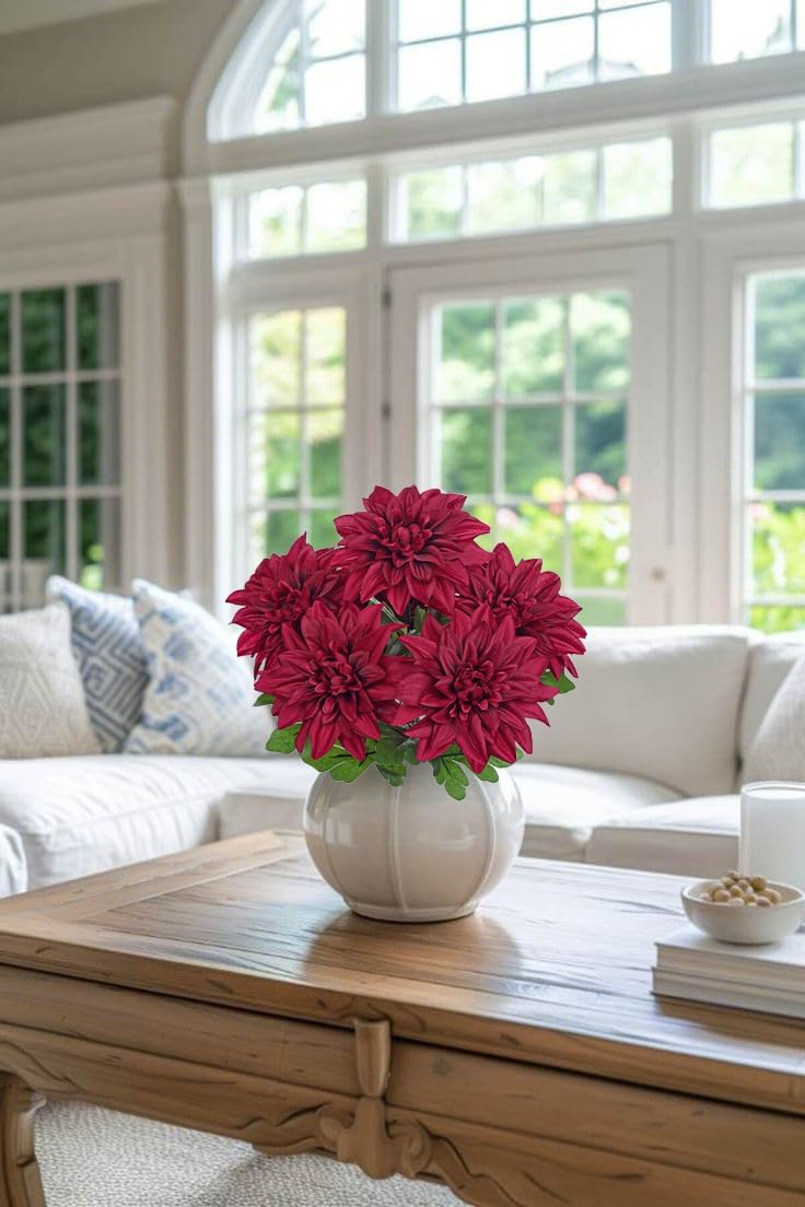 Red Artificial Dahlia Flowers Bush