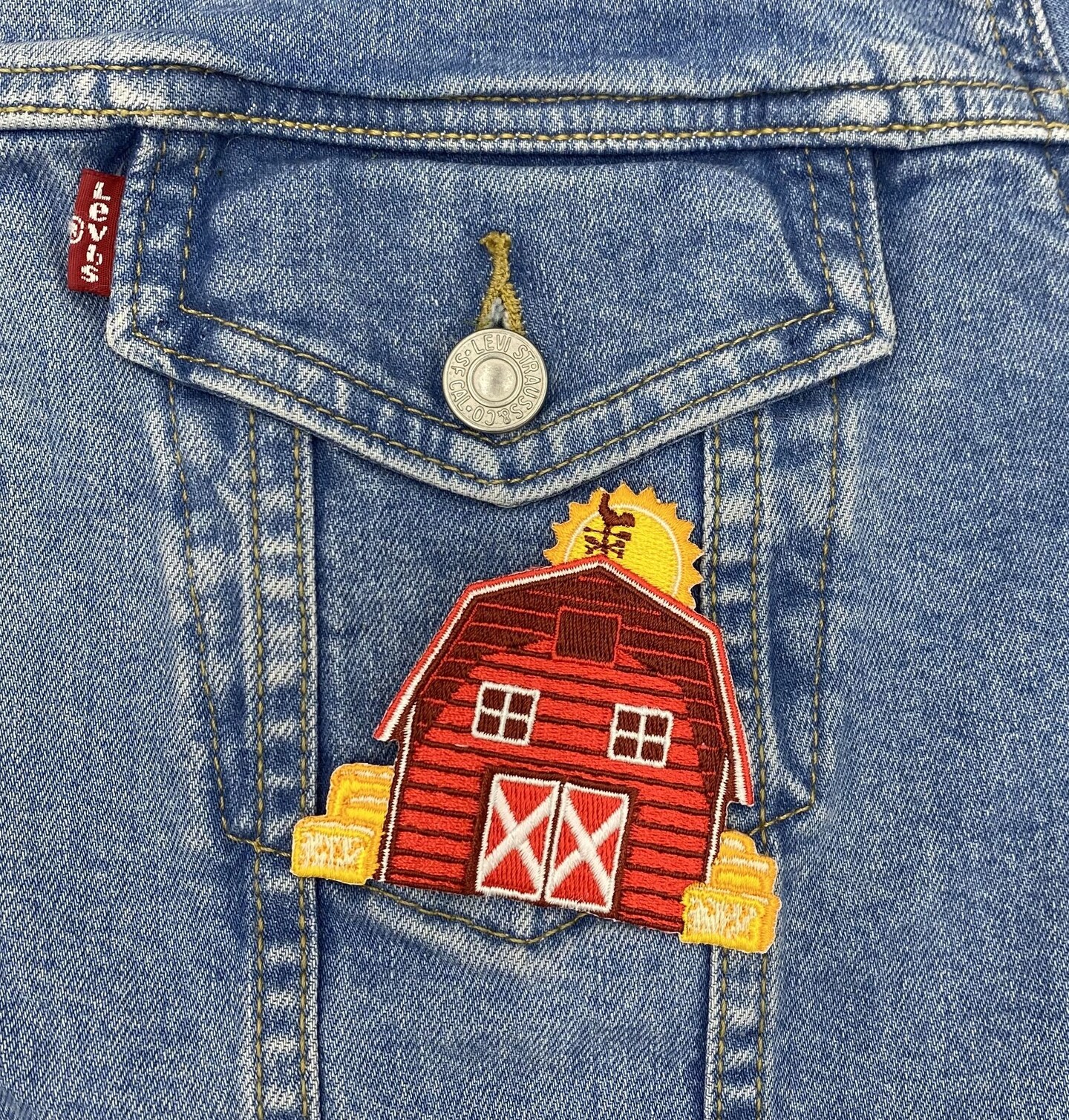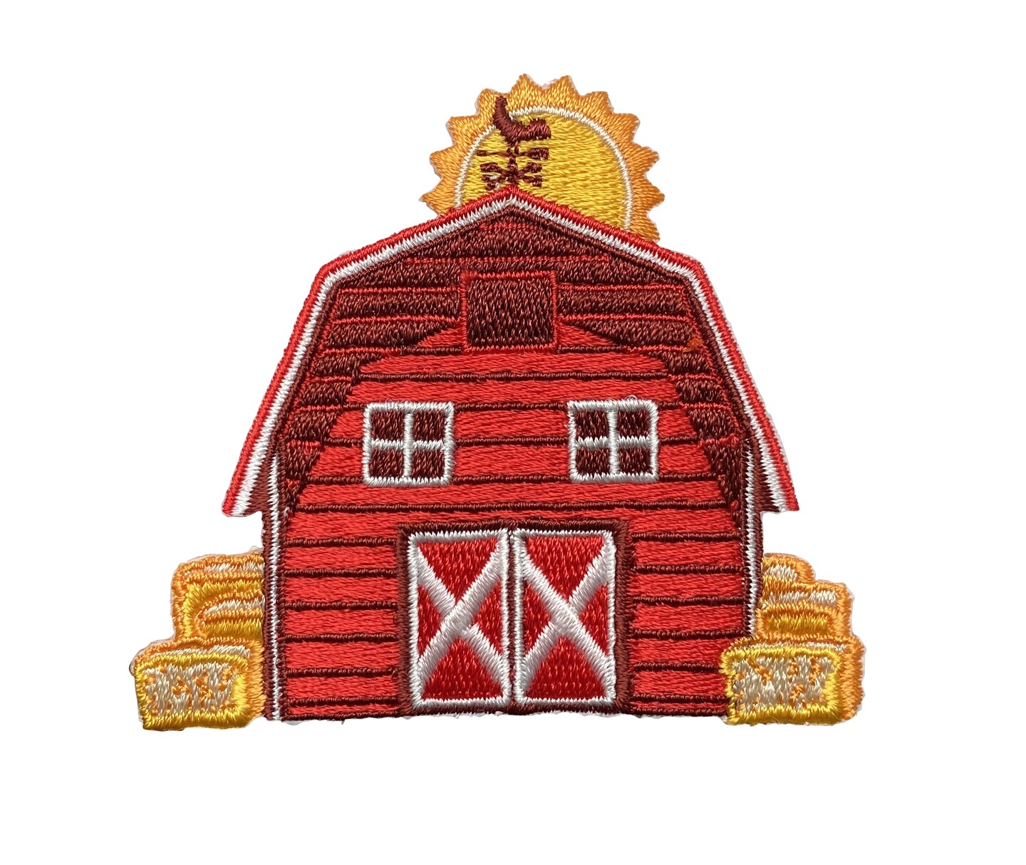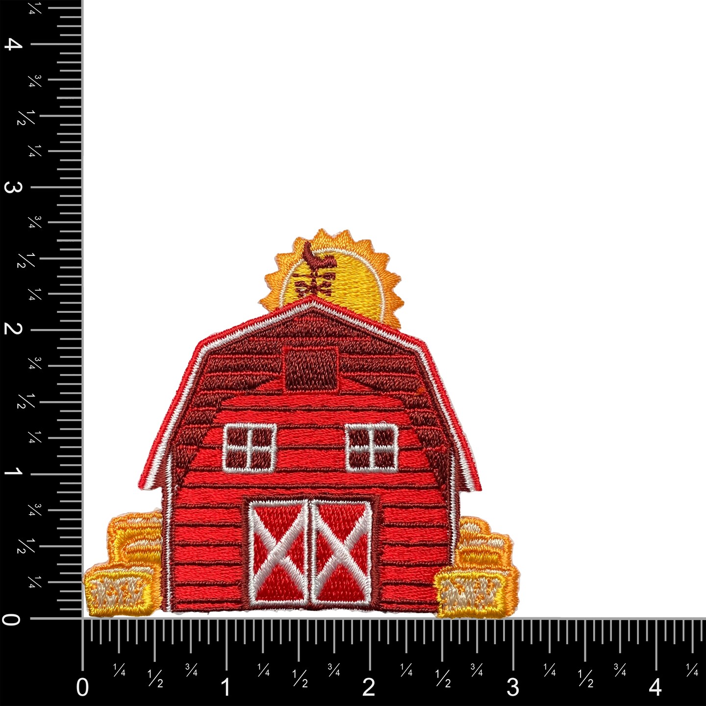 Red Barn Farmhouse with Sun Embroidered Iron on Patch