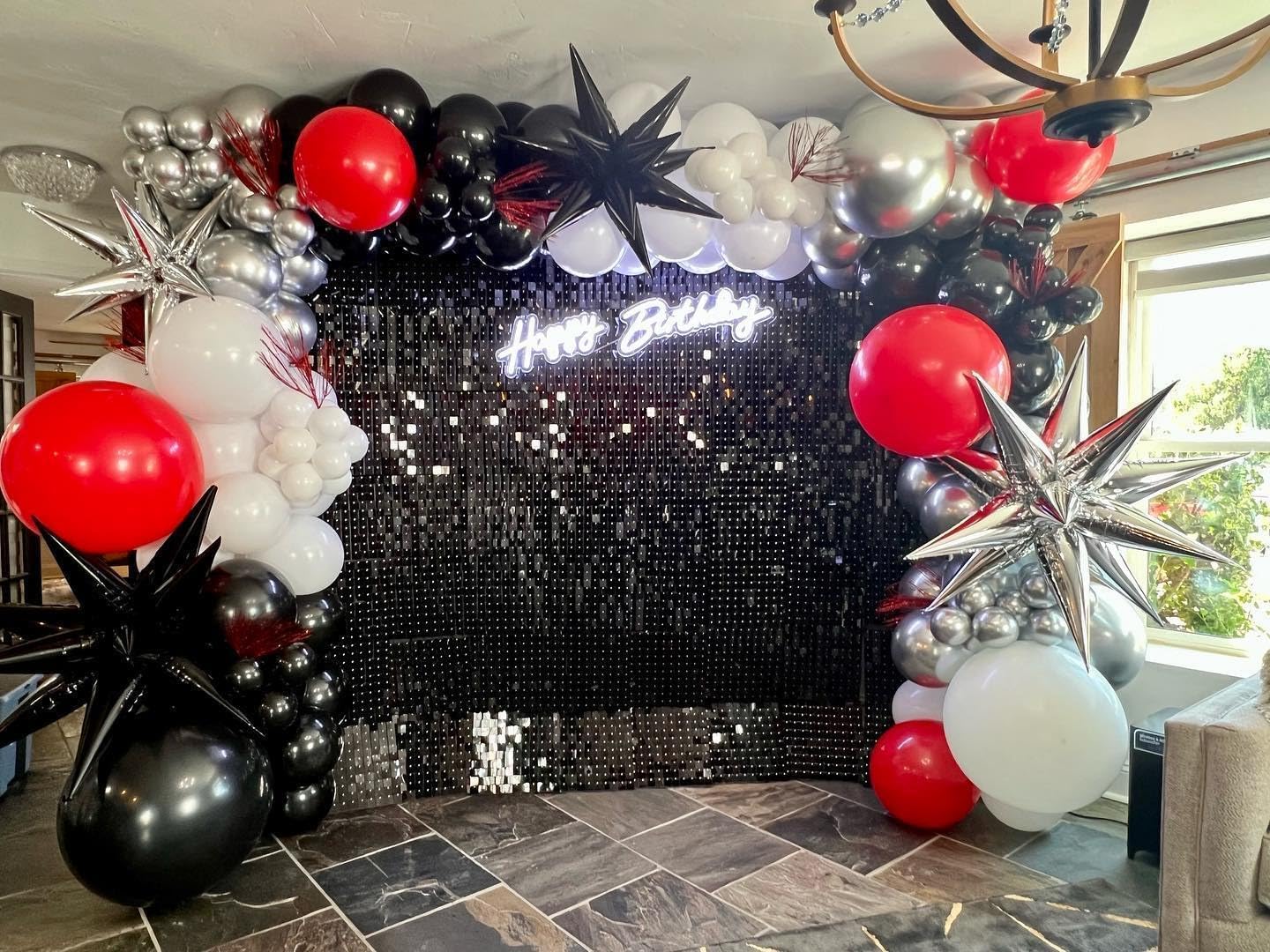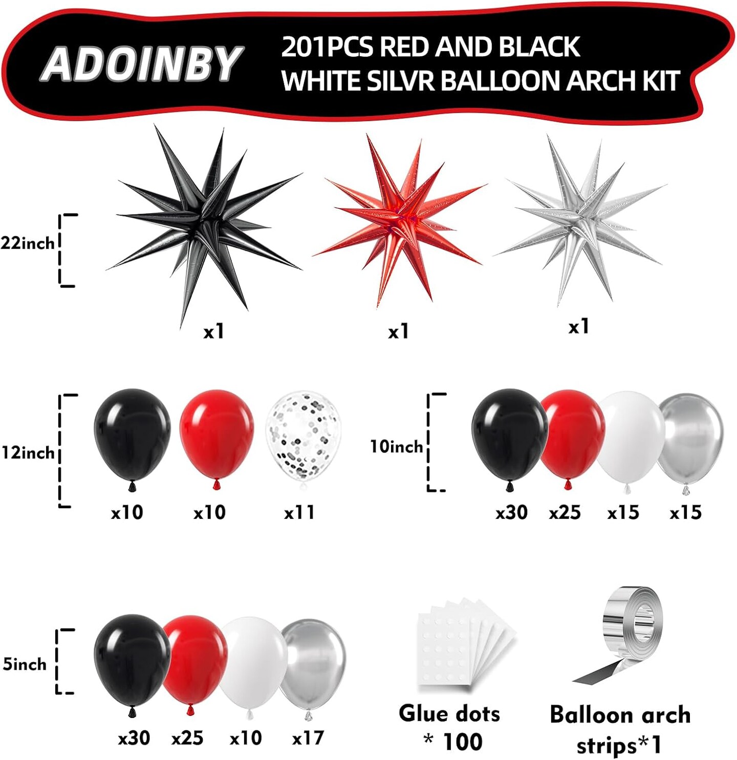 Red Black and White Balloon Arch Kit, 201Pcs Explosion Star Red Black White Silver Latex Balloon Garland kit, Different Size Balloons for Anniversary Birthday Racing Car Poker Party Decoration