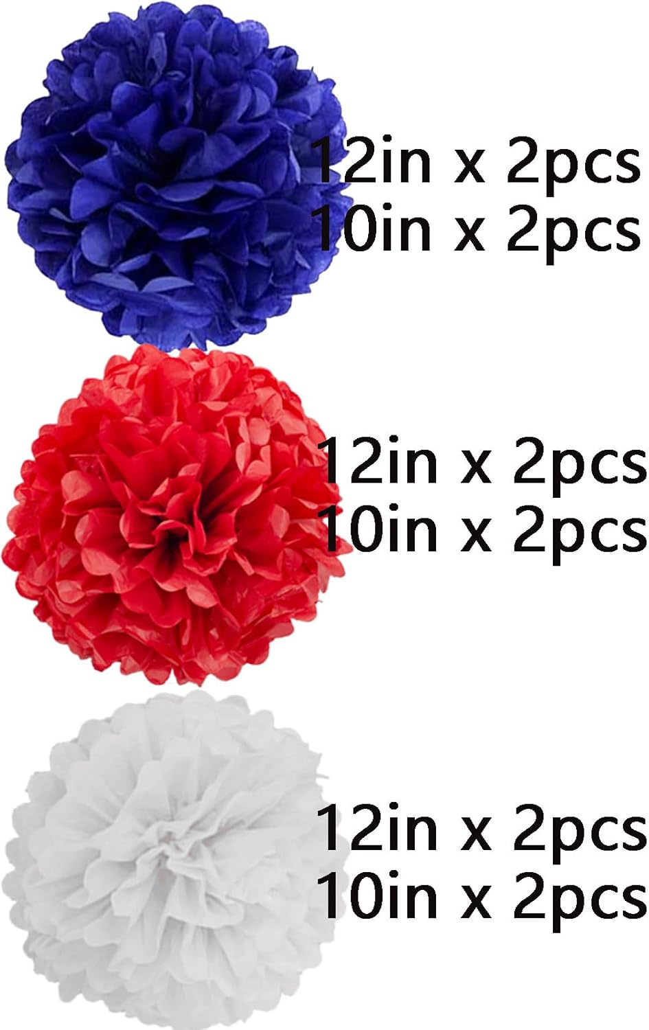 Red, Blue and White Paper Pom Poms Decorations for 4th Fourth of July(12pcs)