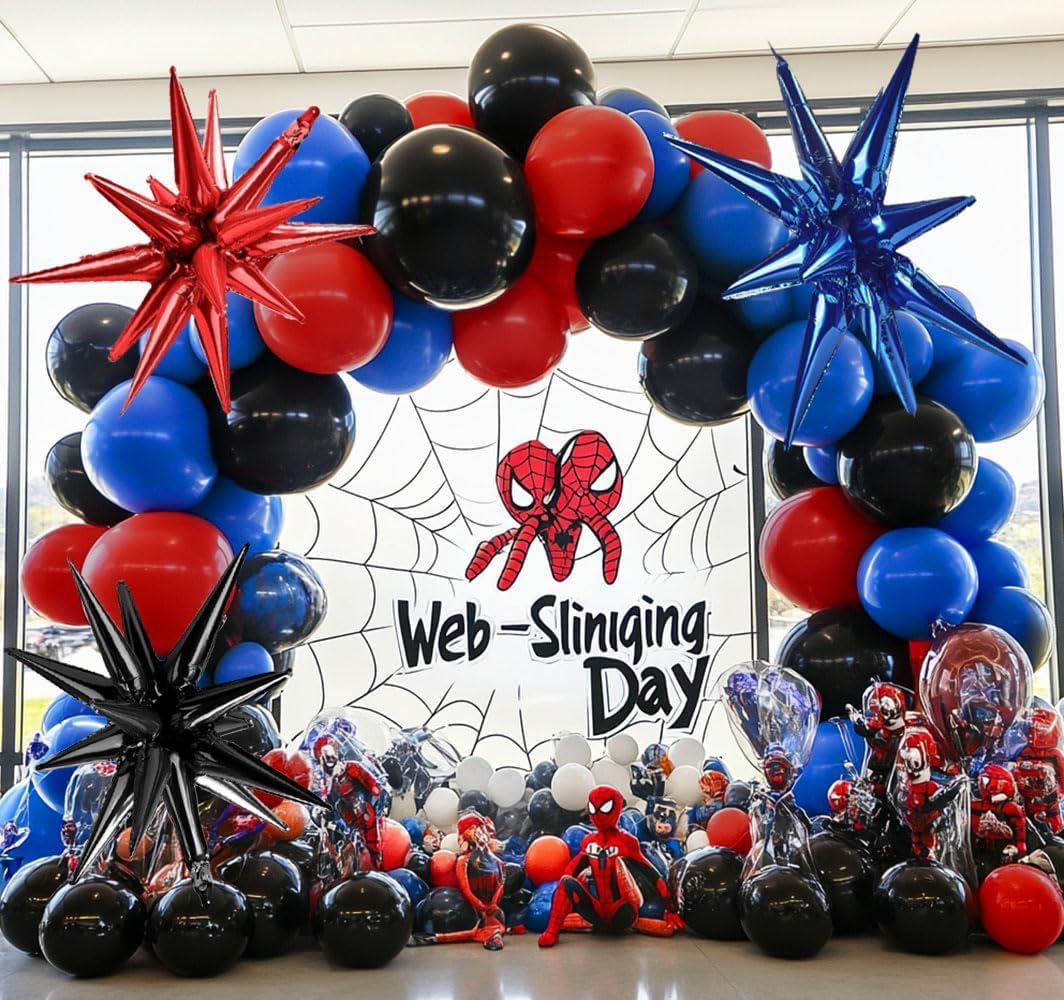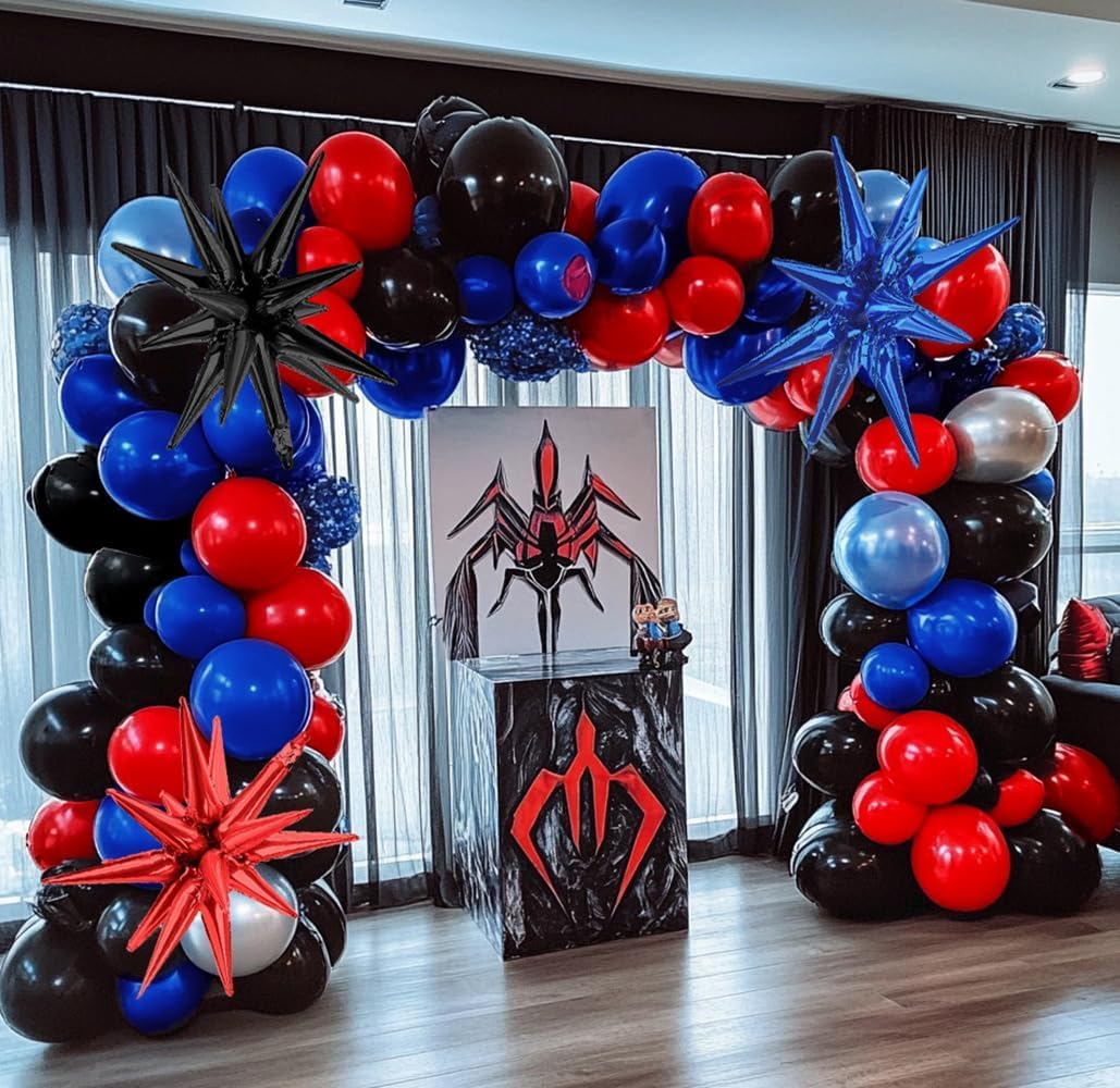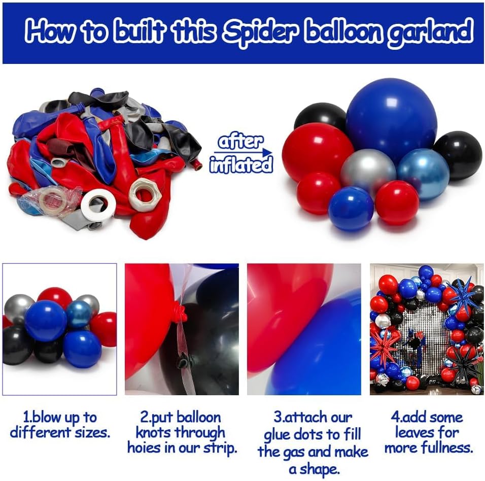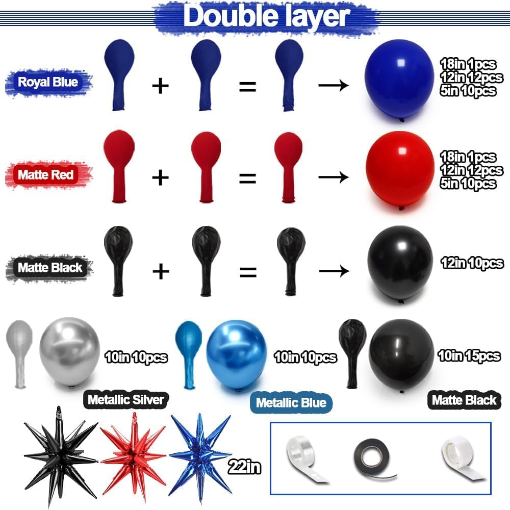 Red Blue Black Balloon Arch Kit - Double Stuffed Royal Blue Red Silver Balloons Garland