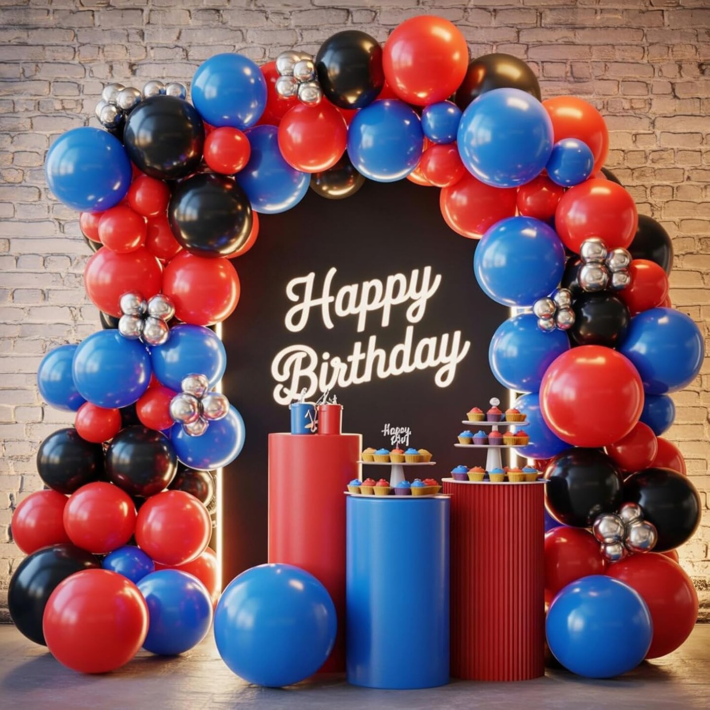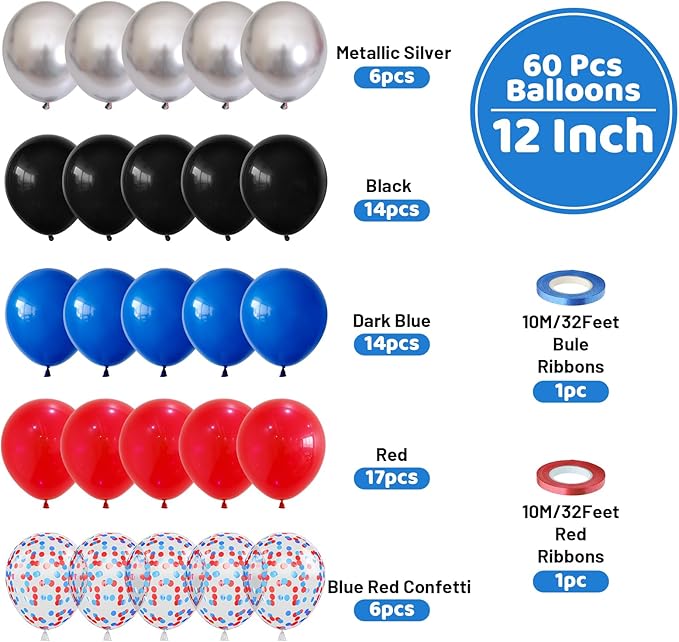 Red Blue Black Balloons, 60PCS Red and Blue Party Balloons, 12Inch Metallic Silver Balloons Dark Red Blue Confetti Balloons for Boys Birthday Graduation Baby Shower Party Decorations